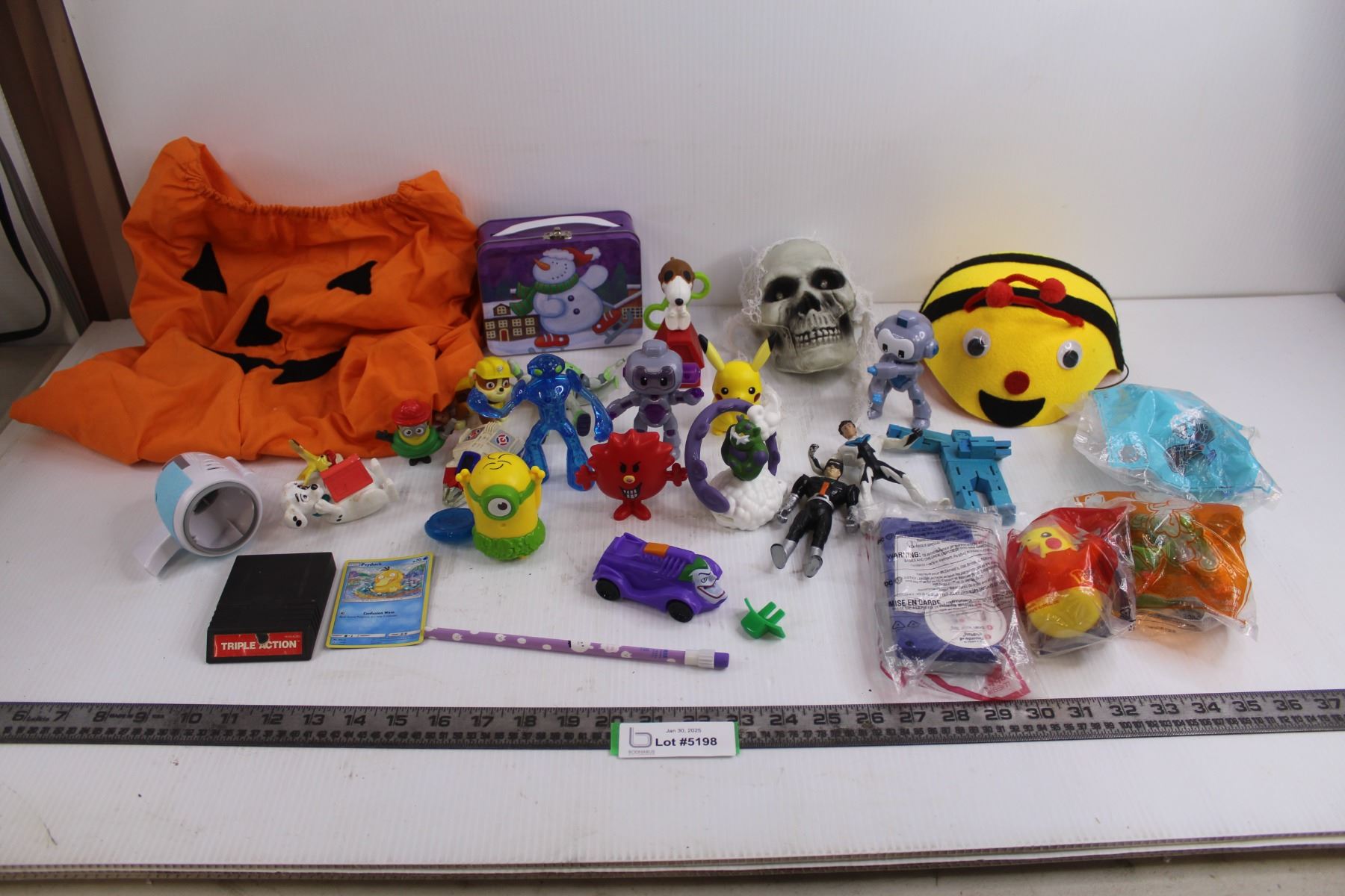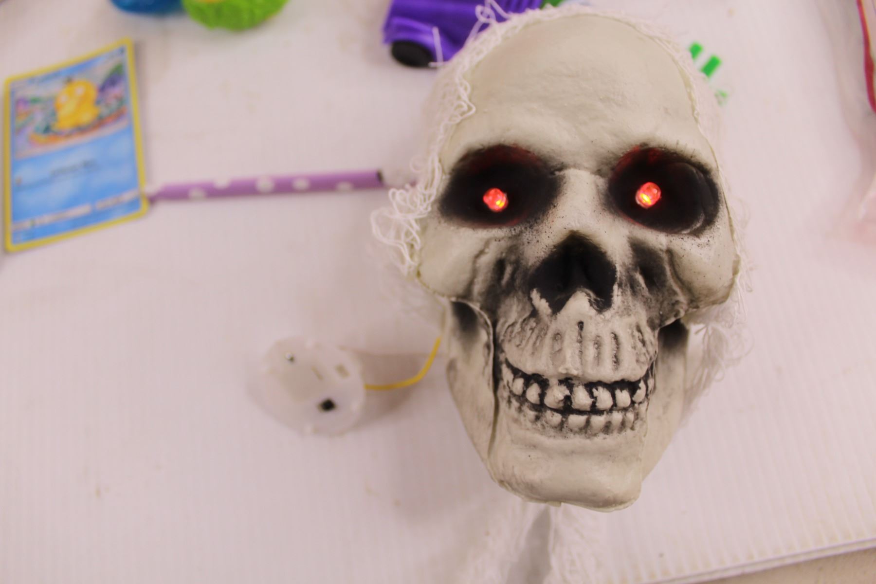Assorted Kid's Toys (Jack-o-lantern Onesie, Snowman Lunch Kit, Bee Hat, Skull with Eyes that Light-up, Misc.