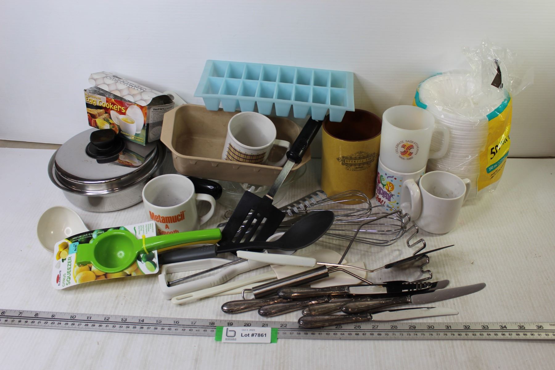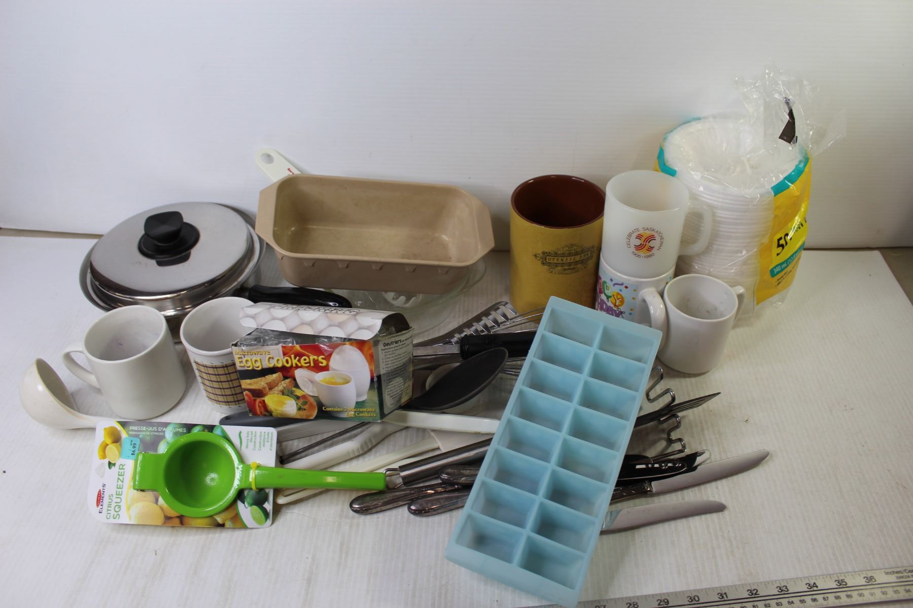 Assorted Kitchen Items- Foam Plates, Cups , Utensils - Misc