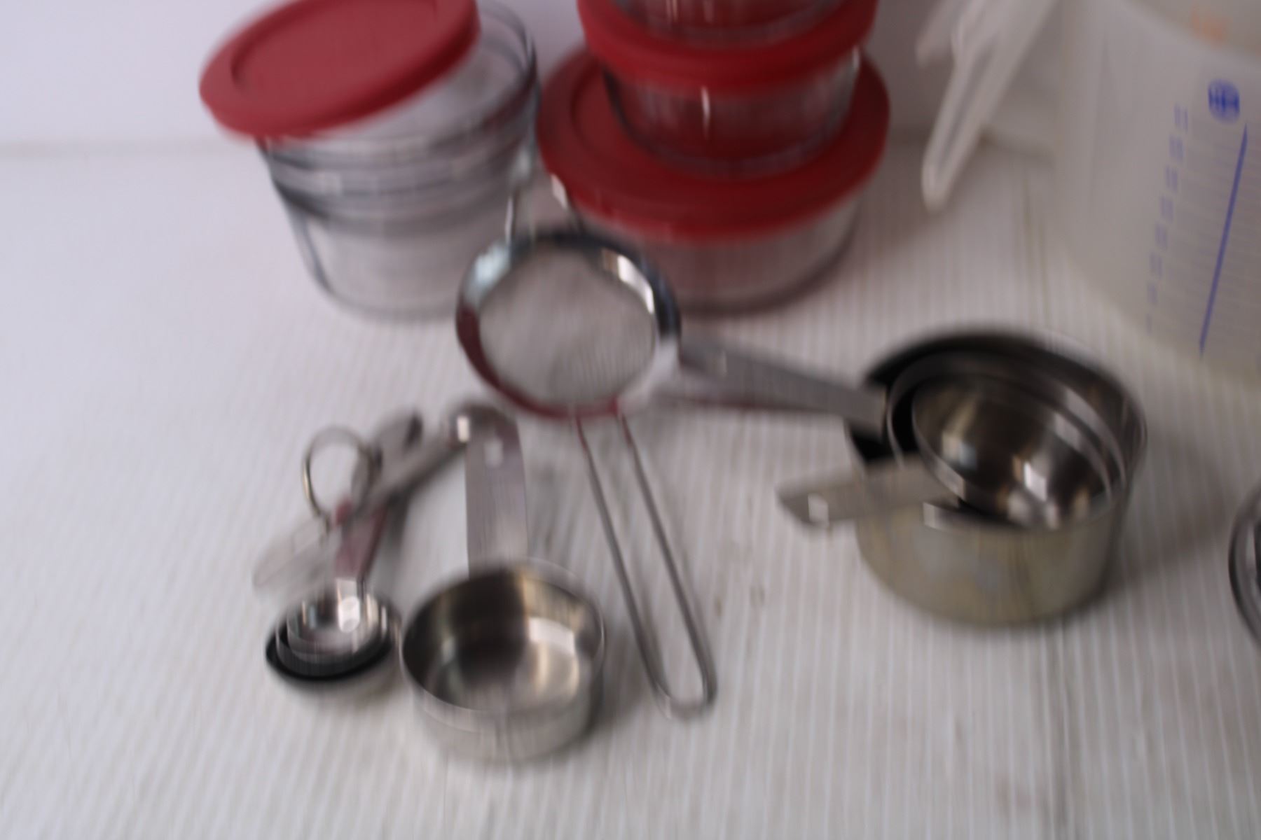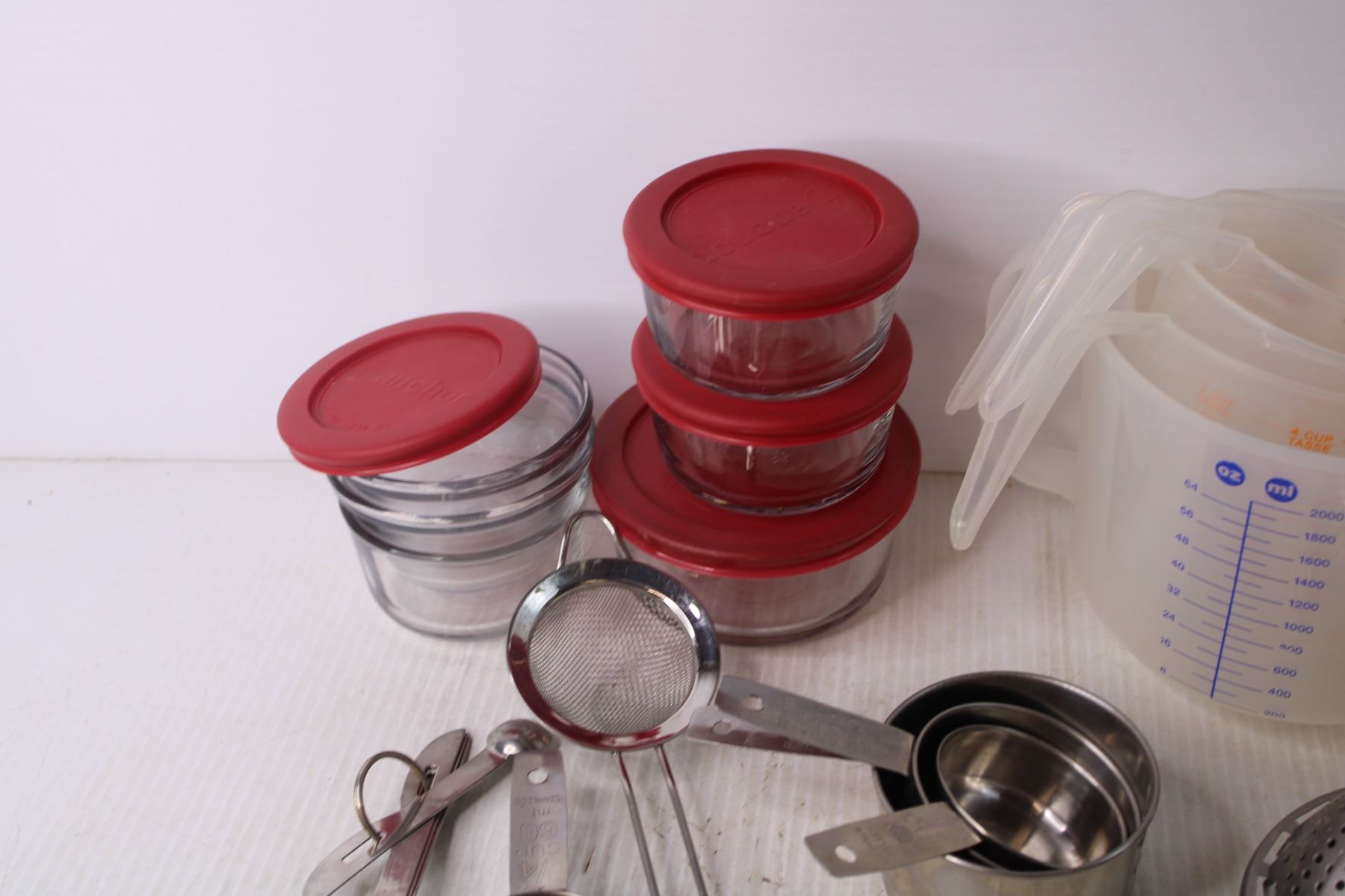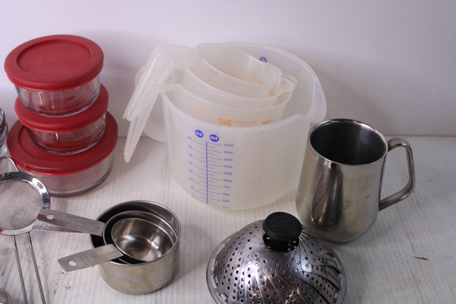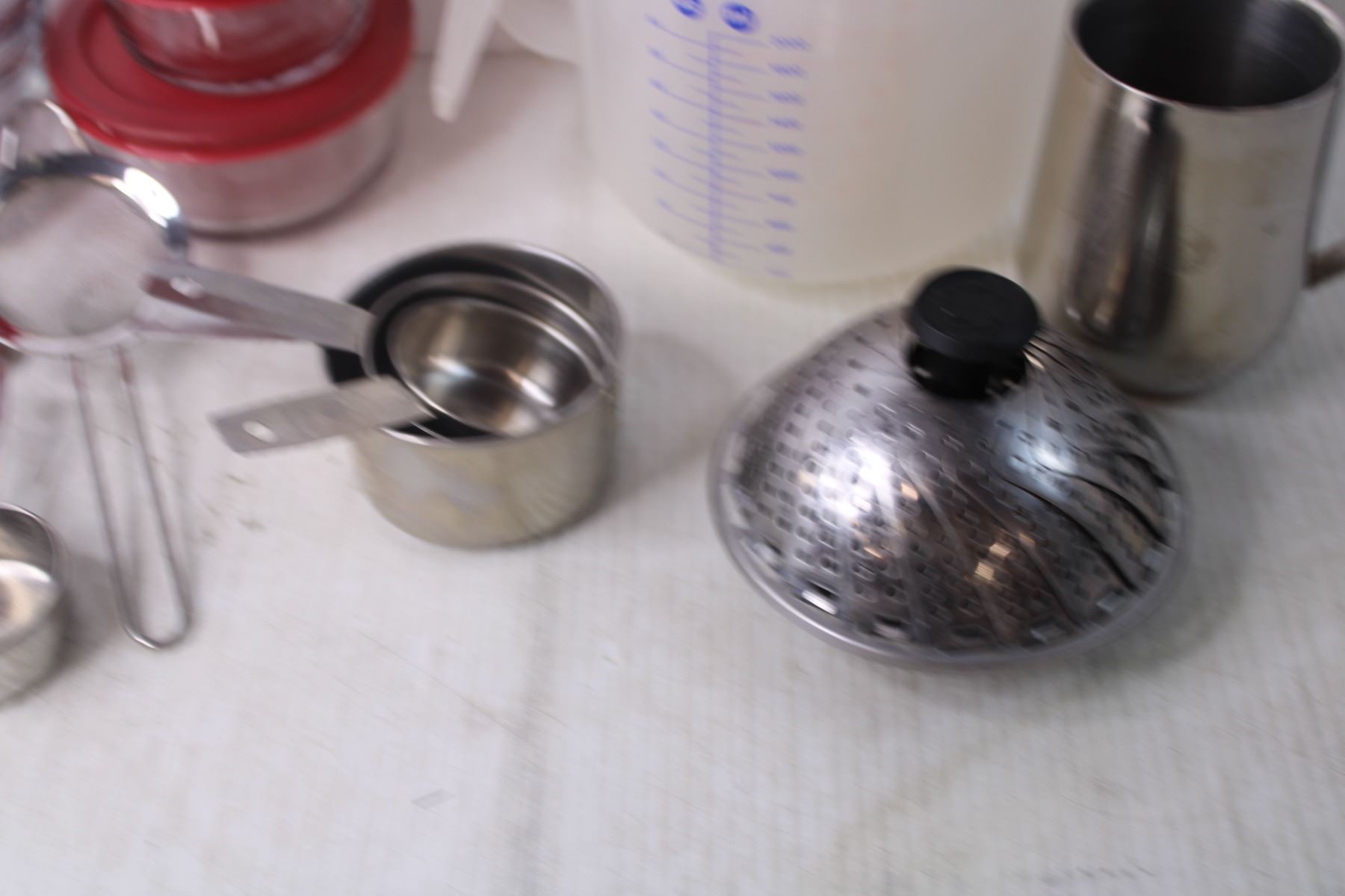 Assorted Kitchen Items - Storage Jars, Measuring Cups, Misc.