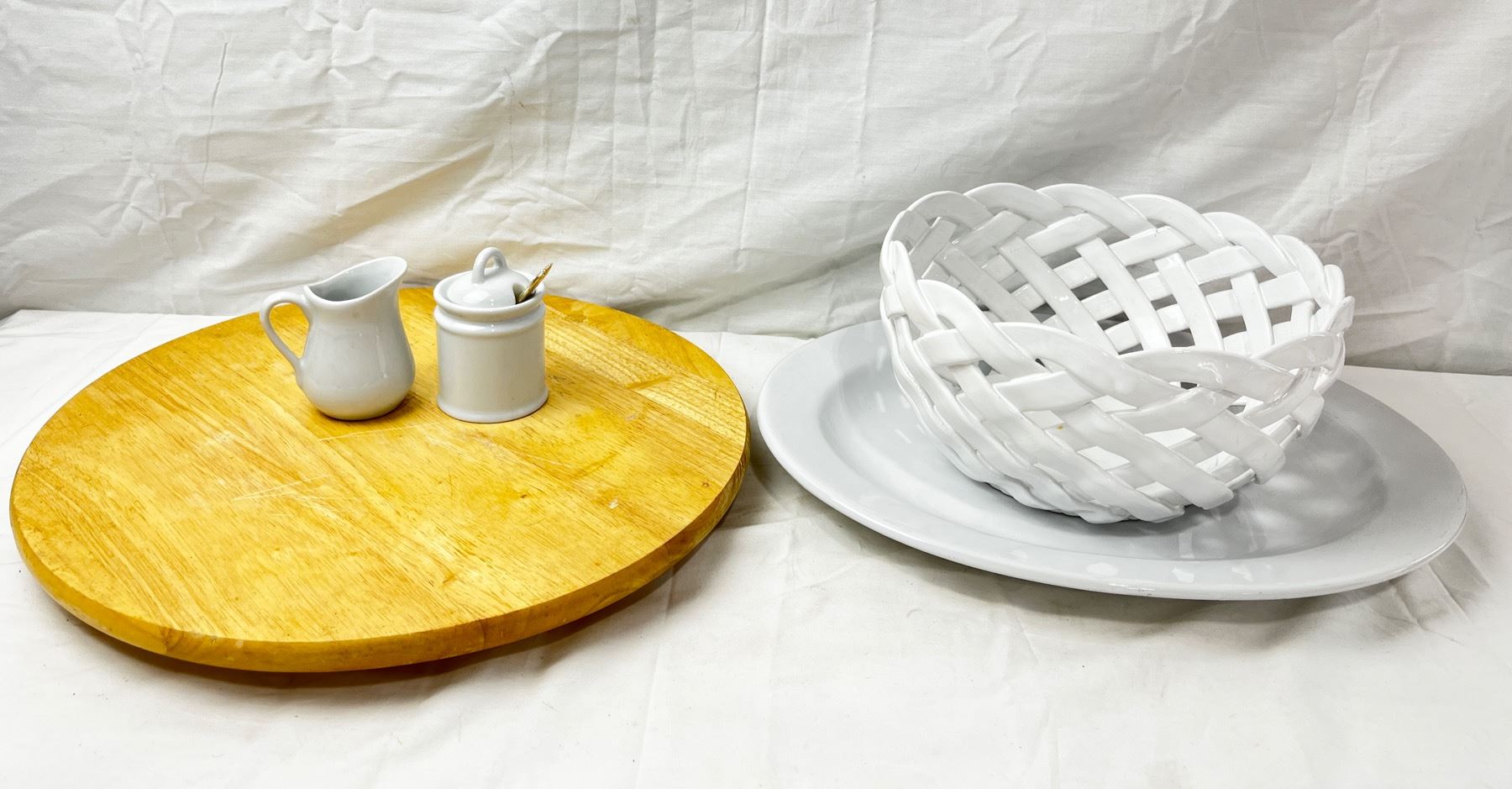 5 pieces including lazy susan - bowl - tray - sugar and creamer dishes