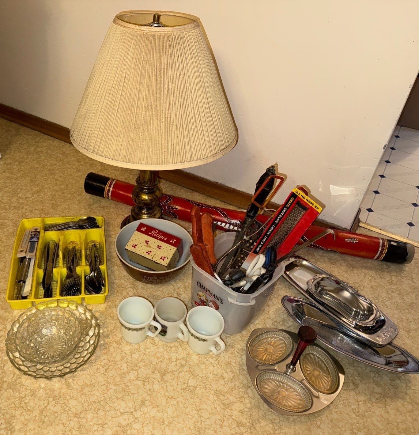 Assorted Kitchen Utensil Bundle- Silverware Set, Lamp, Bowls & Cups, Recipes & More