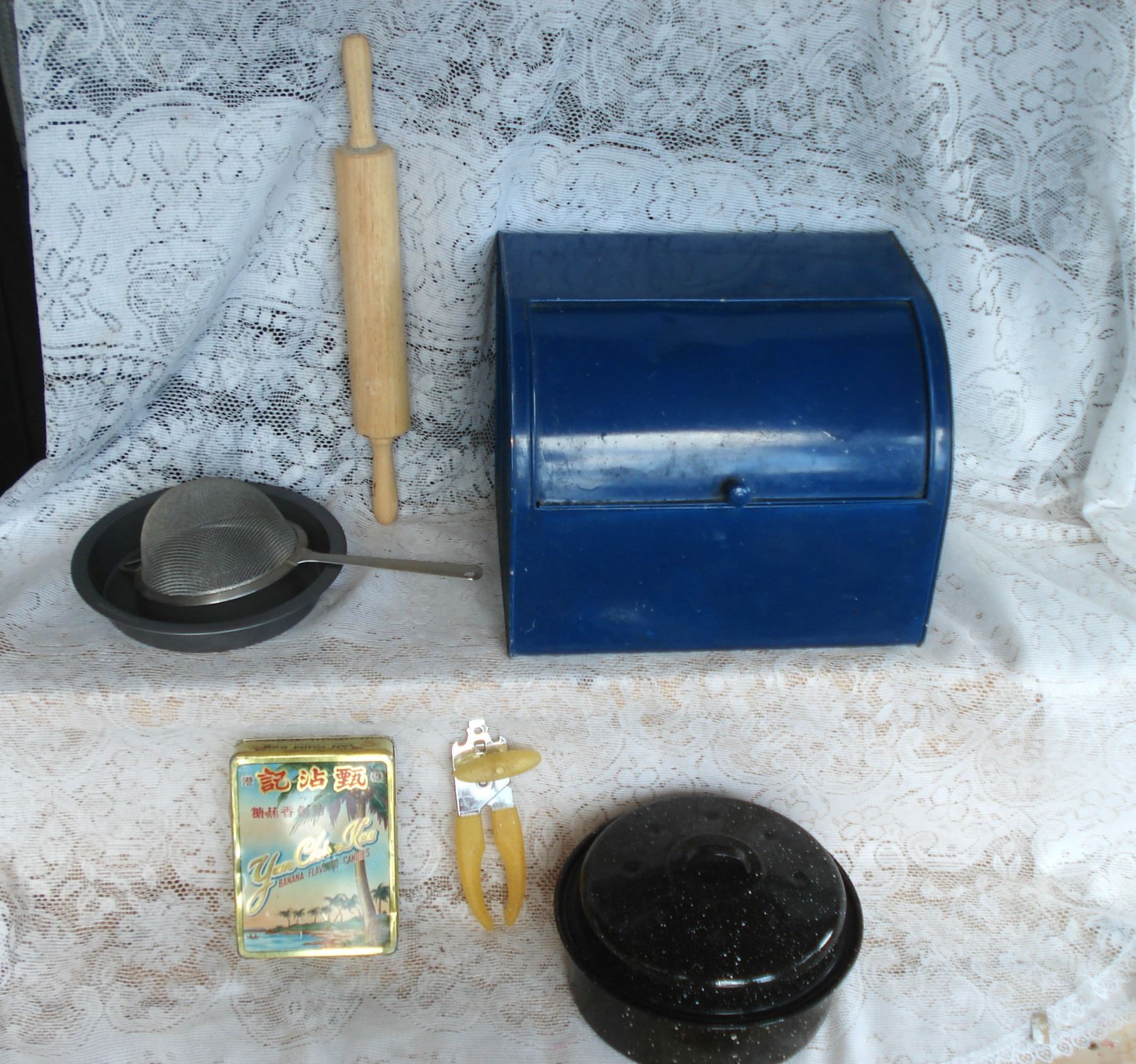Assorted Kitchen Wares Bread Keeper Spraypainted see pics