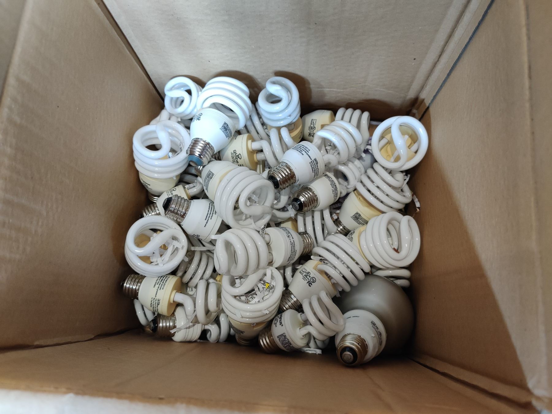Box of Globe Mini Spiral 9W 120V 60Hz Fluorescent Bulbs