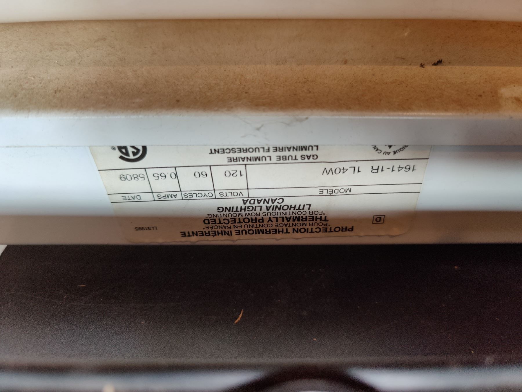 Gas Tube Luminaire 1641-1R 1L40W 120V Bulb with fixture