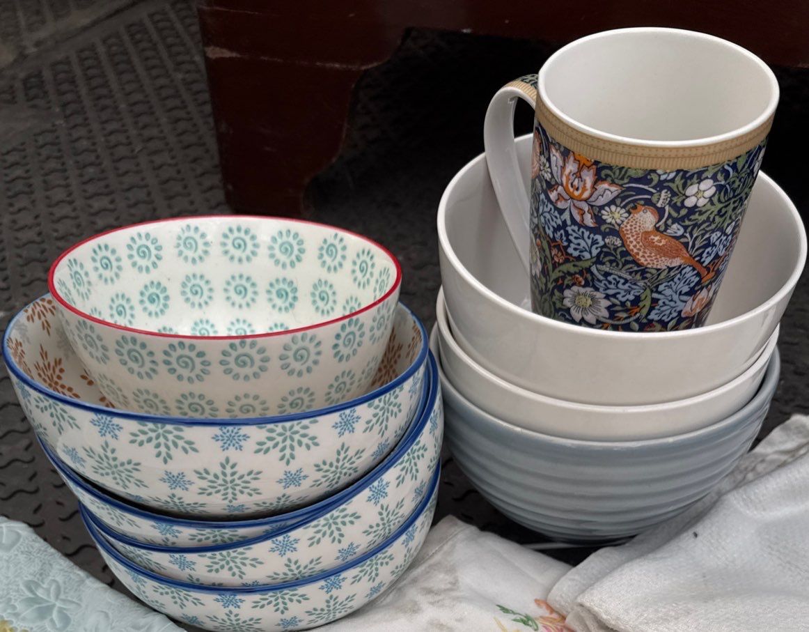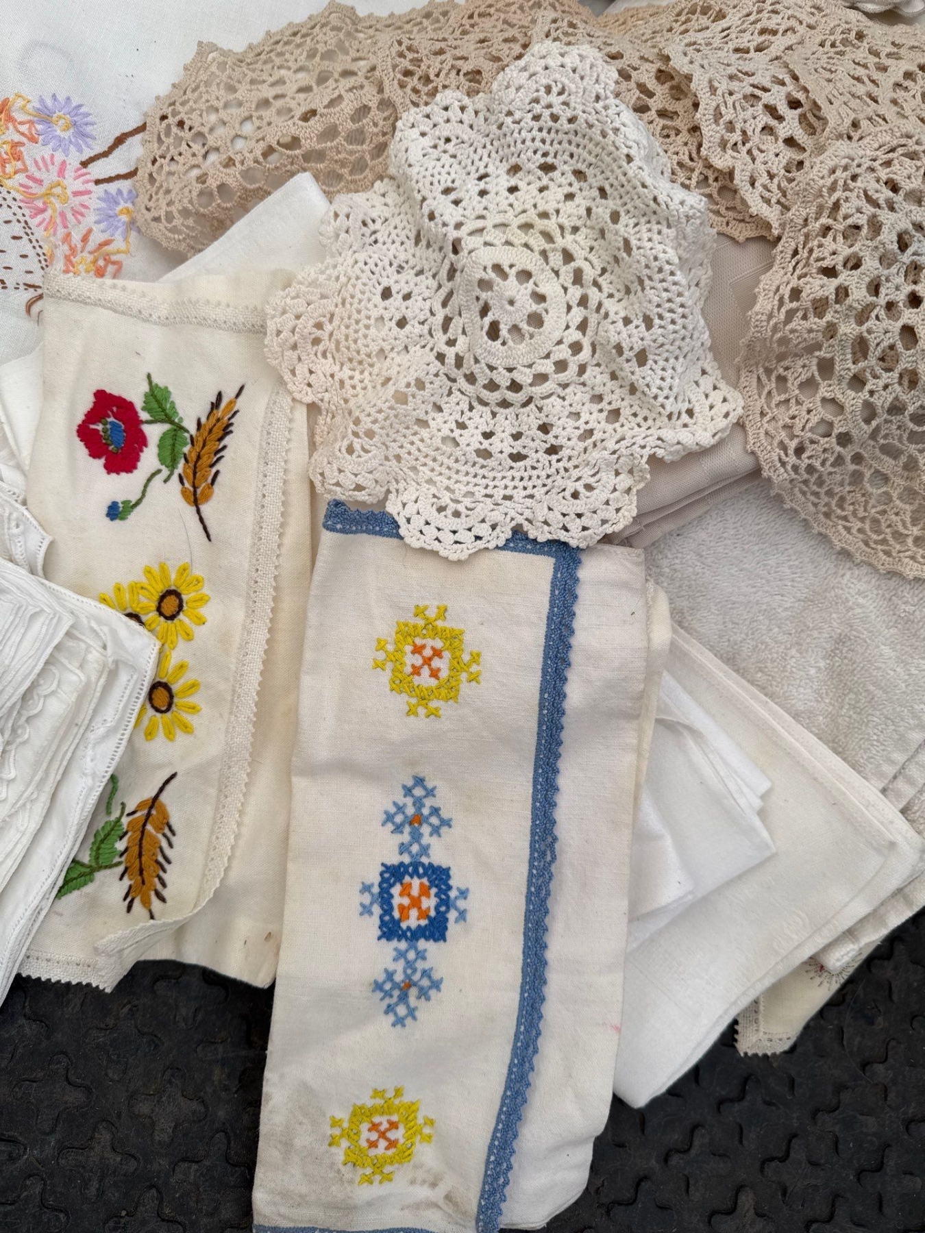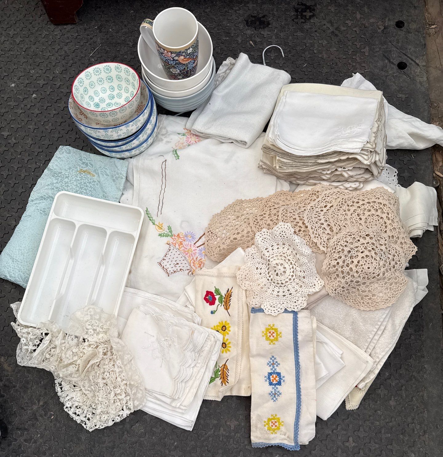 Assorted Linens & Washable Napkins w/Bowls & Cup