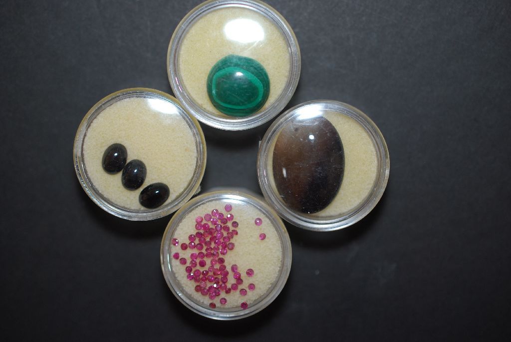 Assorted Loose Colored Gemstones; Maroon, Black, Green Marbled & Brown Marbled; Lot of 4 Packs; EST.