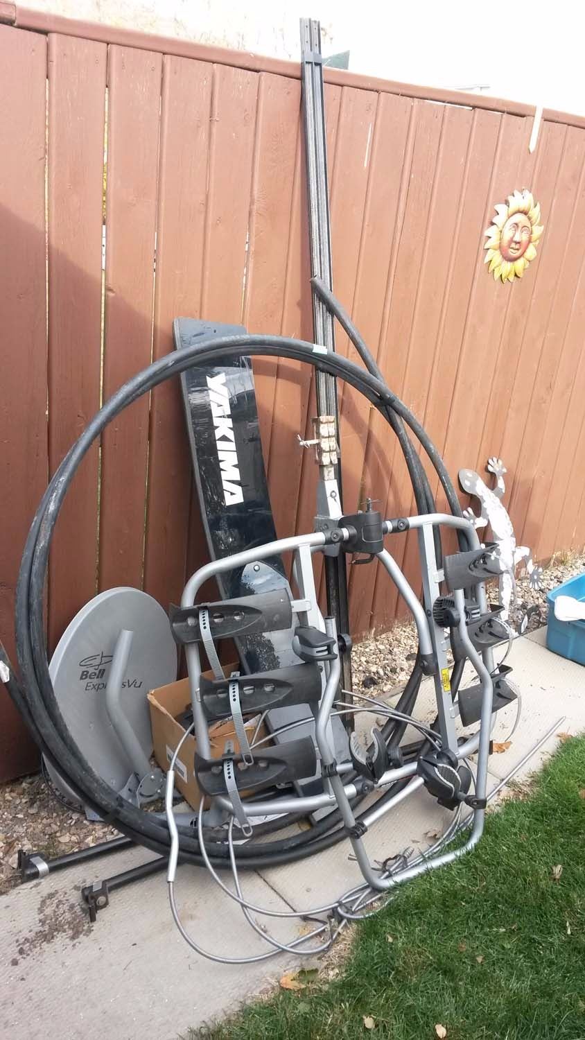 Assorted Lot Of items (Sewer Snake, Bike Carrying Rack, Bell Dish)