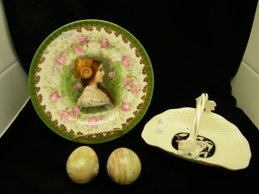 Assorted Lot-Plate, Basket And 2 Alabaster Eggs -