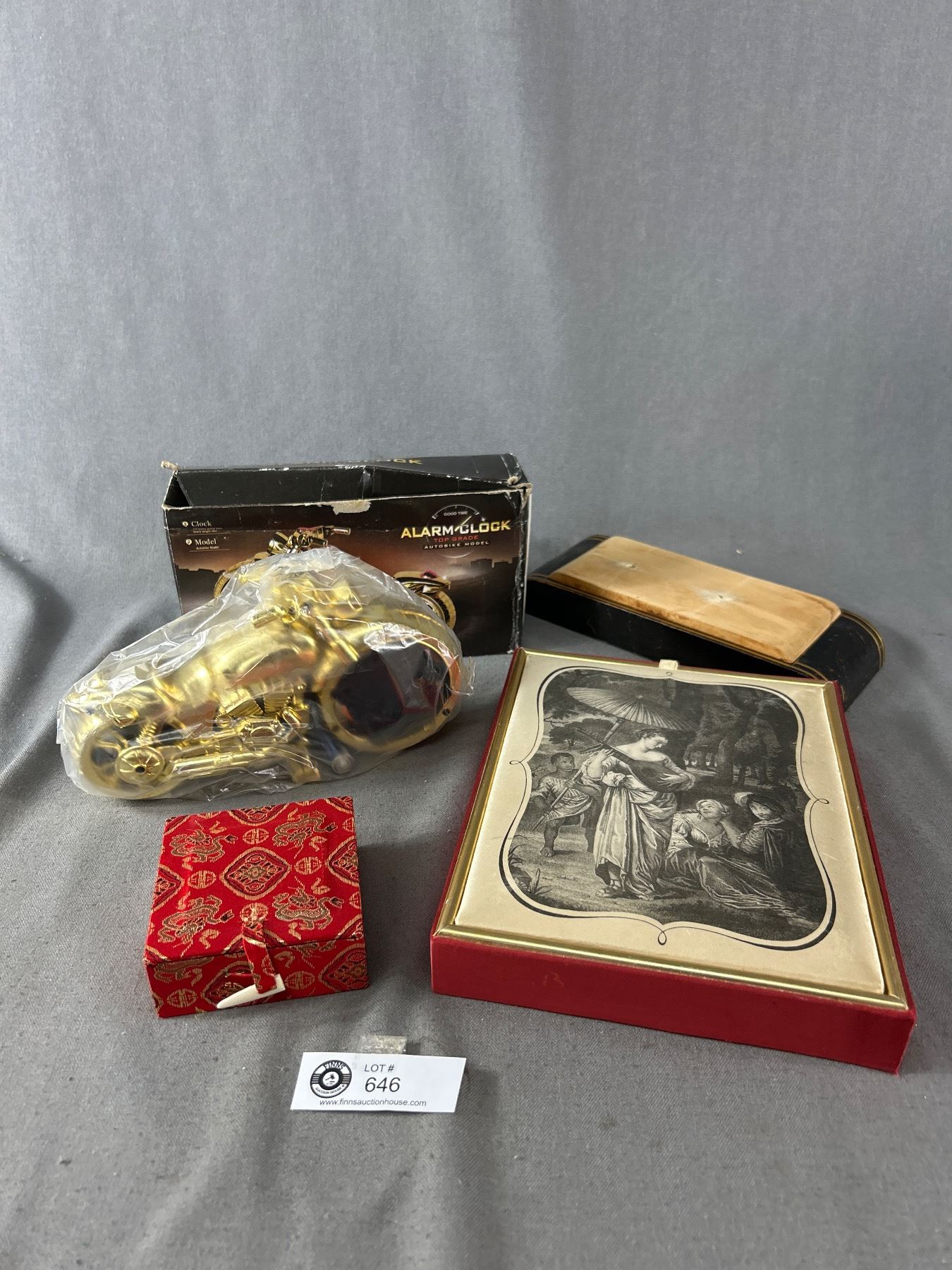 Assorted Lot - Vintage Trinket Boxes w/ Lids, Wood One Is From Saks Fifth Avenue & AutoBike Alarm Clock