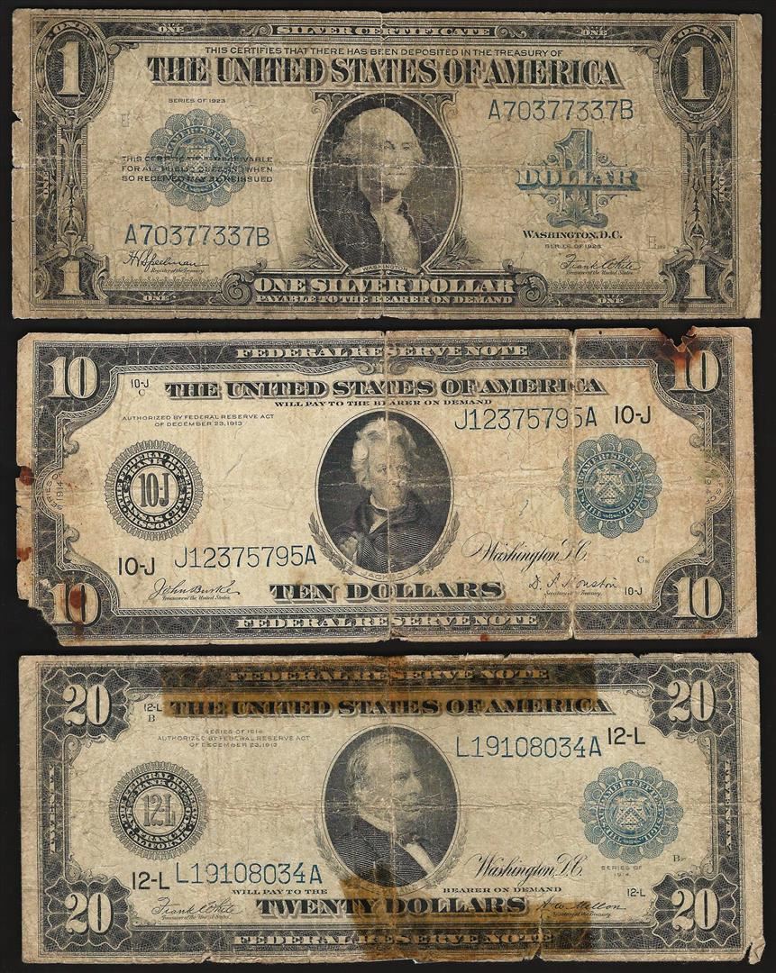 Assorted Lot of (3) Large Size Federal Reserve & Silver Certificate Notes
