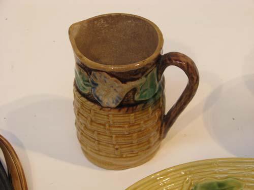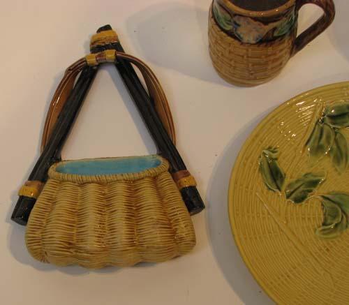 Assorted Majolica including wall pocket