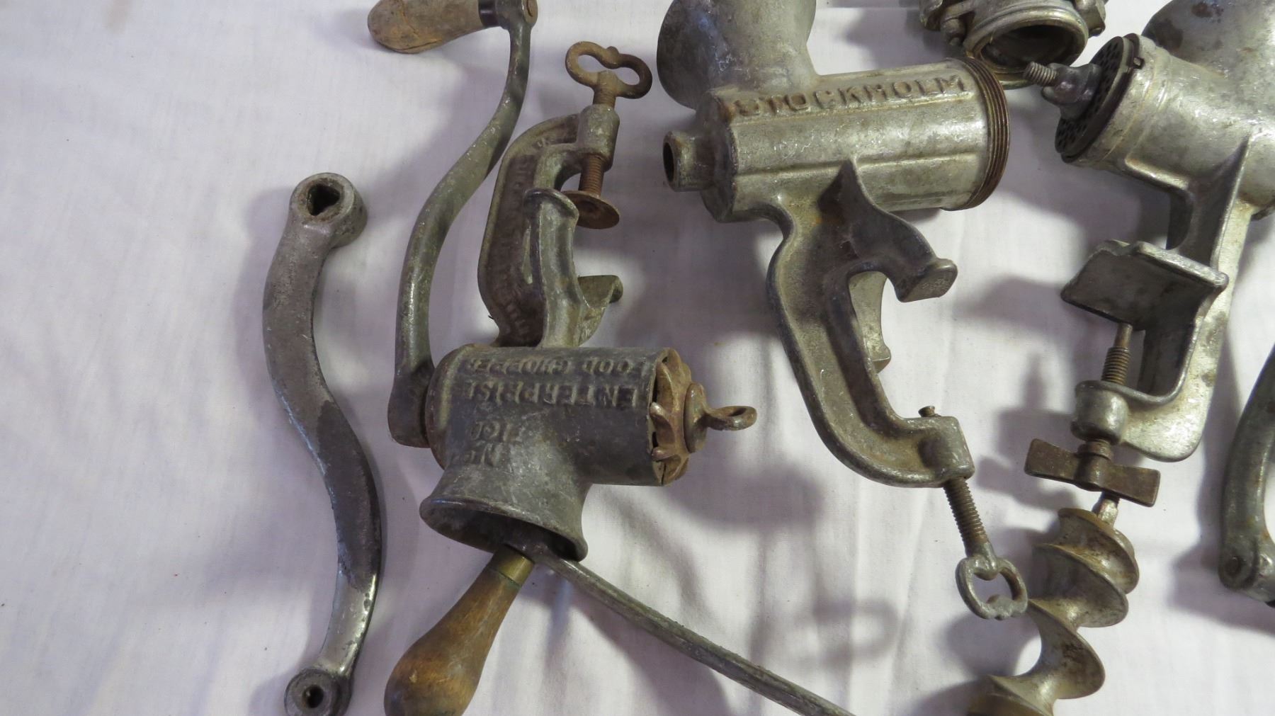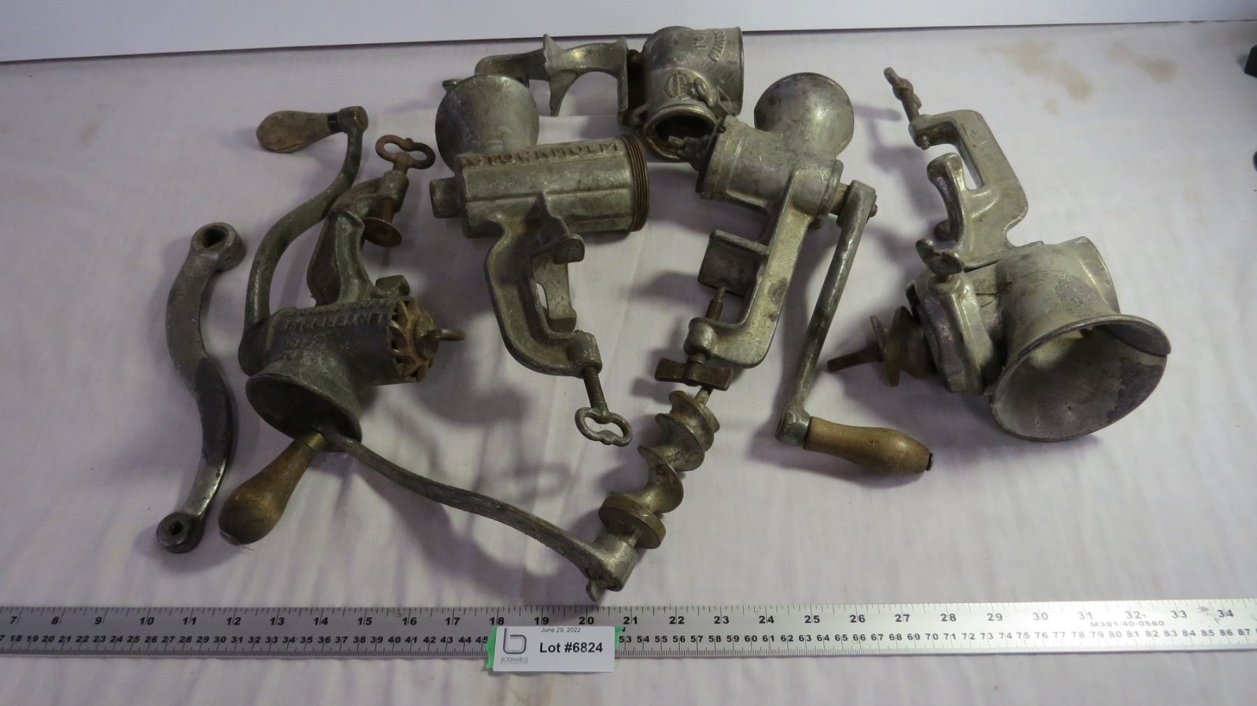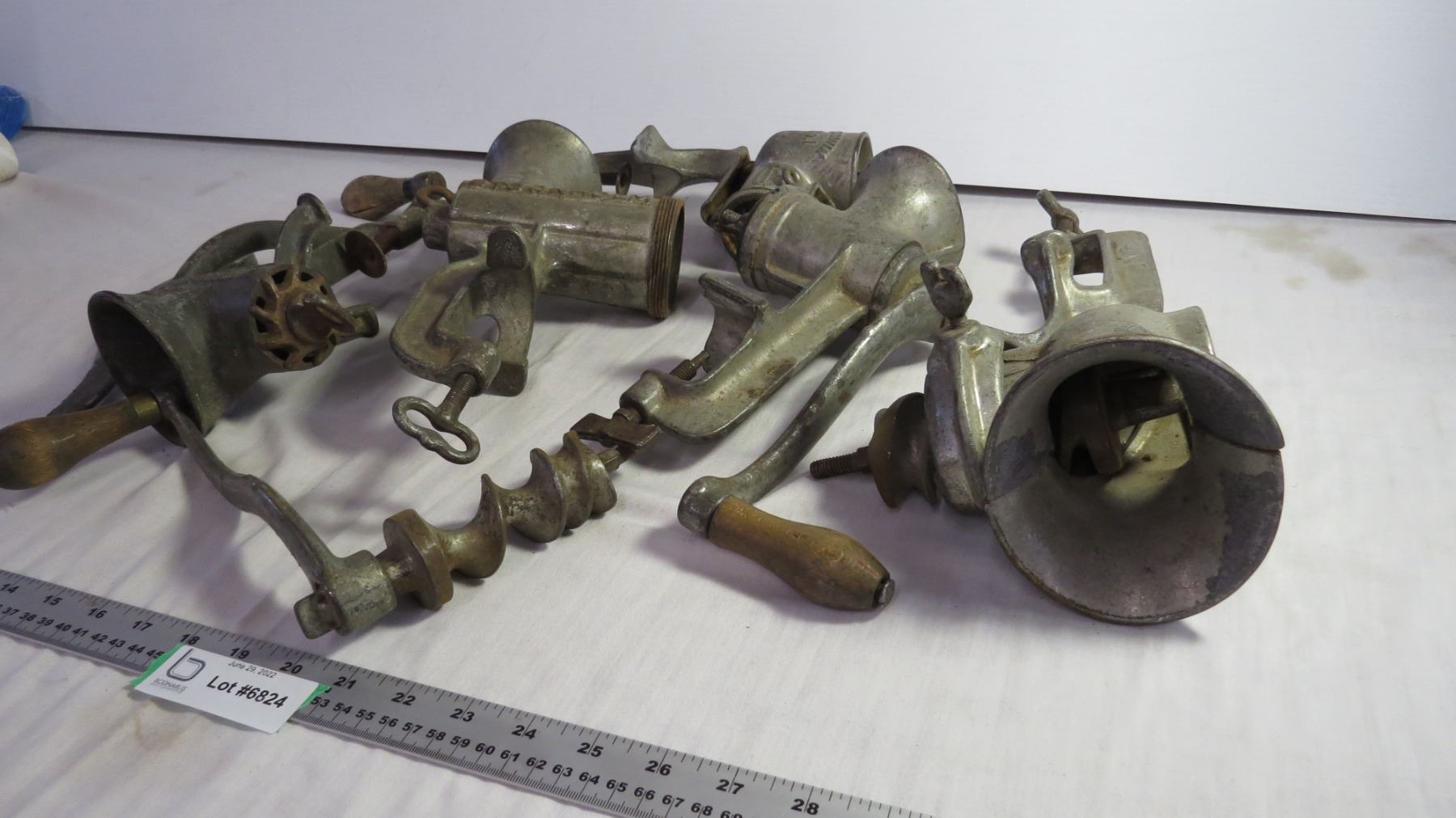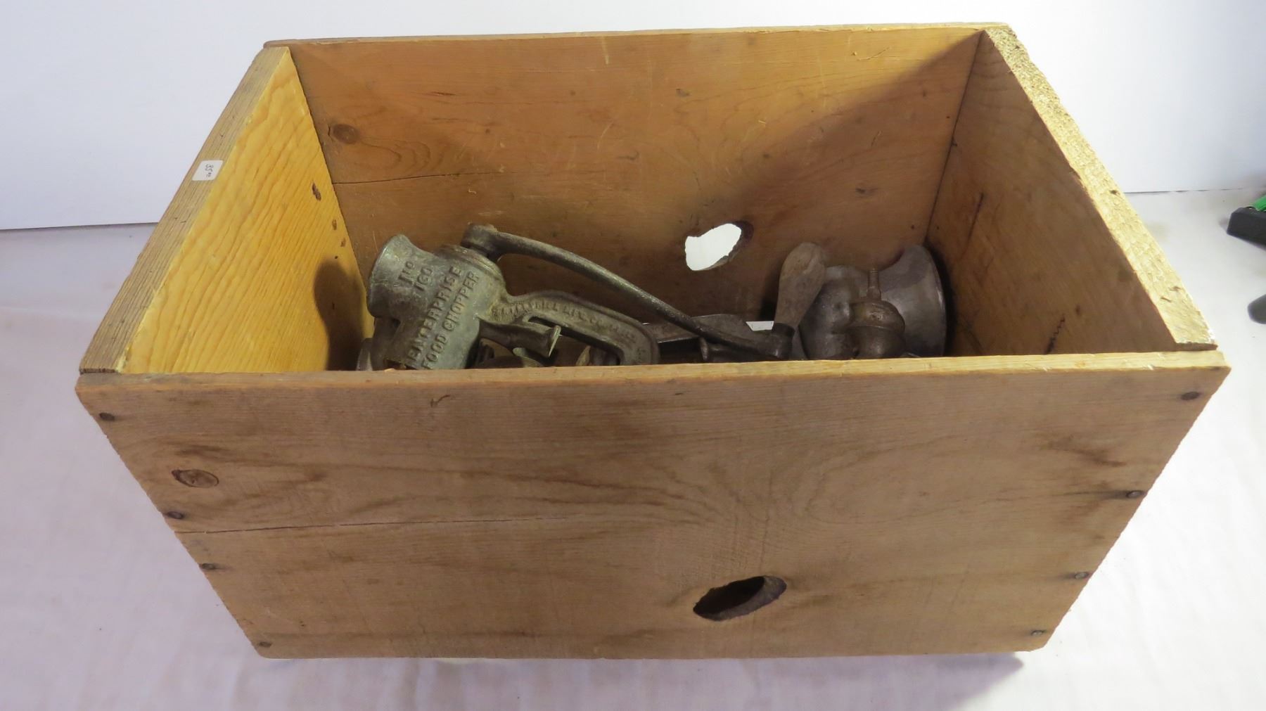 *Assorted Meat Grinder Hoppers and Parts in Wood Crate