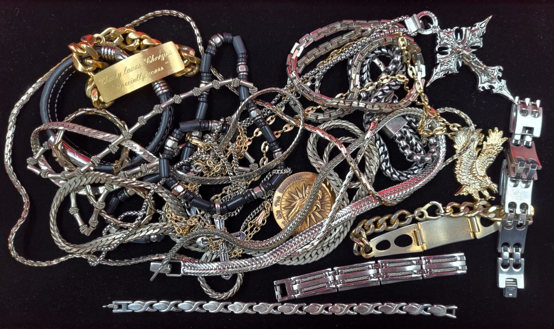 Assorted Men's Jewelry Lot w/ Necklaces & Bracelets (One Sterling Silver Bracelet)