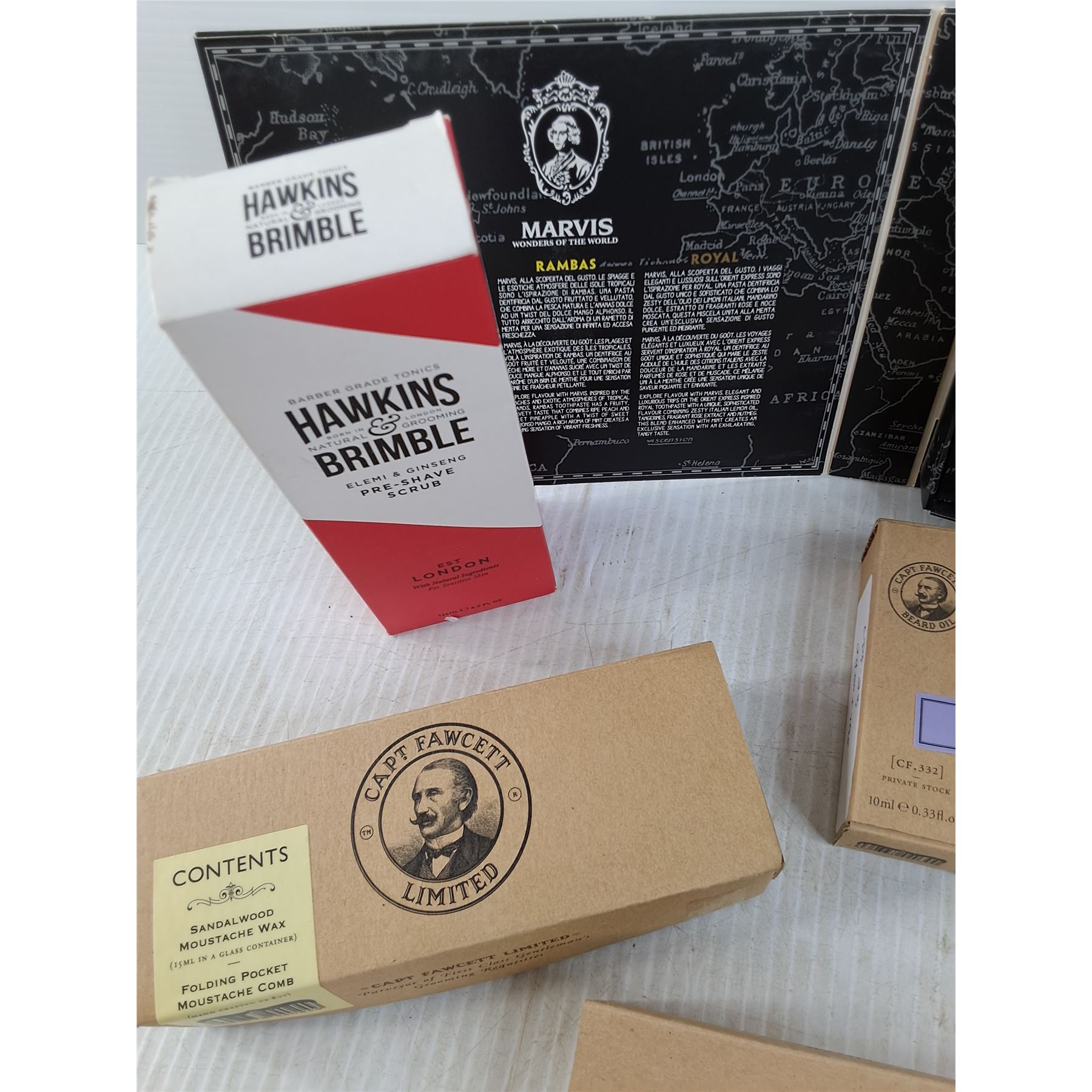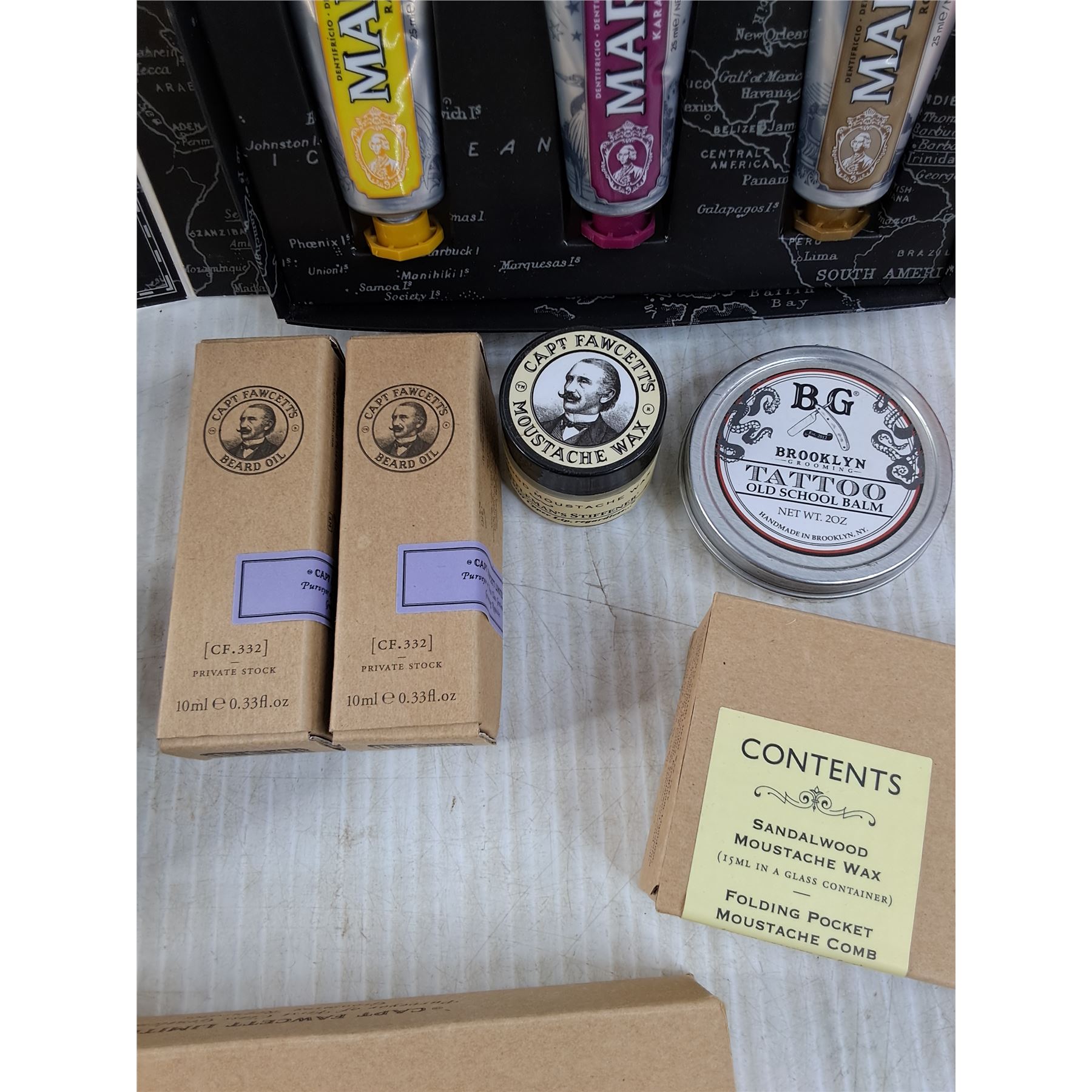 Moustache Wax, tattoo balm, Toothbrush and Toothpateand Pre Shave Scrubs.