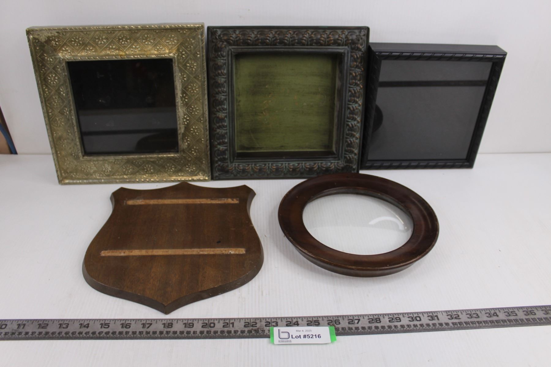 Assorted Metal & Wood Wall Display Items (Boxes, Circle, Plaque) Largest 10.5" x 10.5"