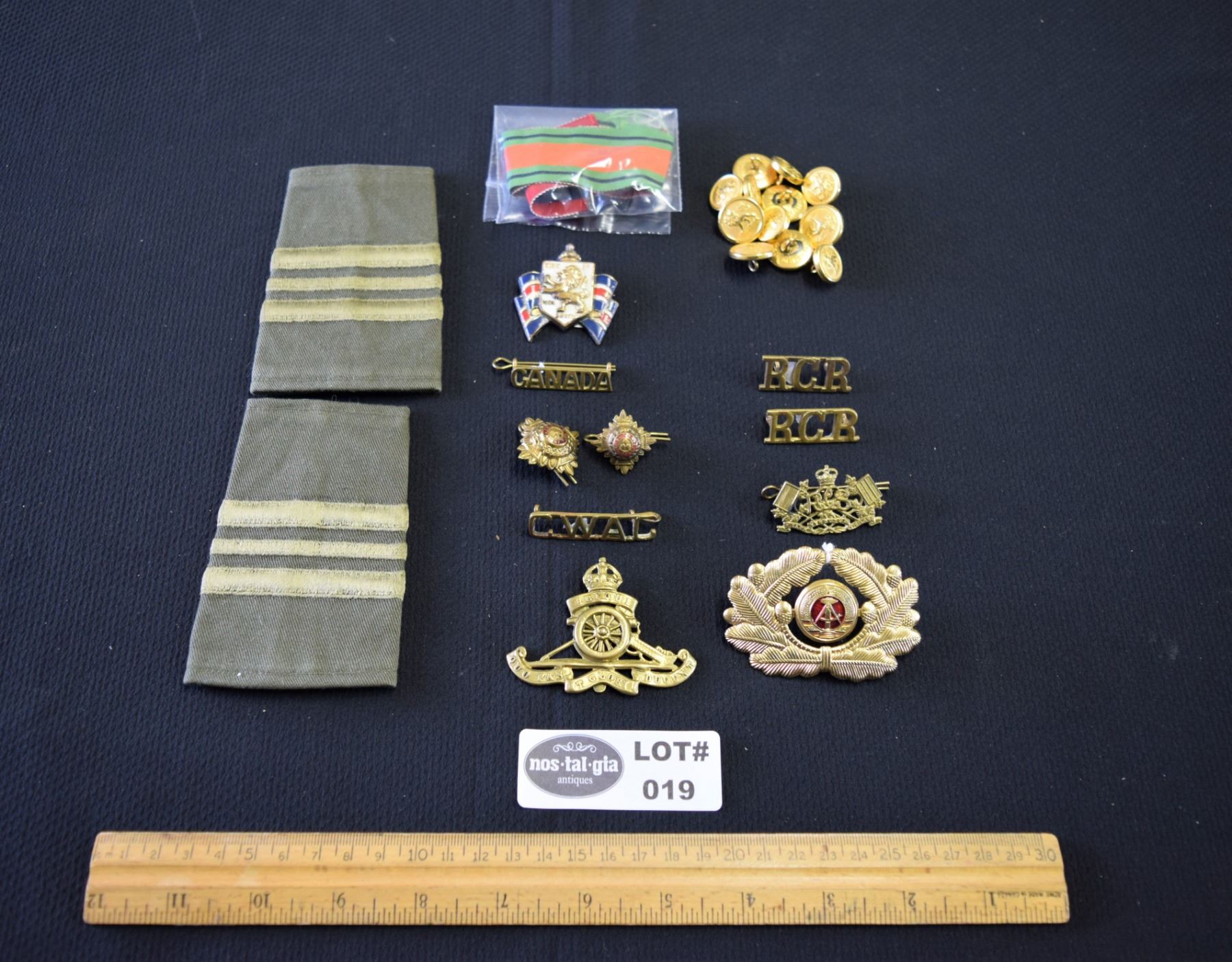 Shoulder Titles, Pips, Butttons, Slip ons, WWII Medal Ribbons, E. German Cap Badge, Etc.