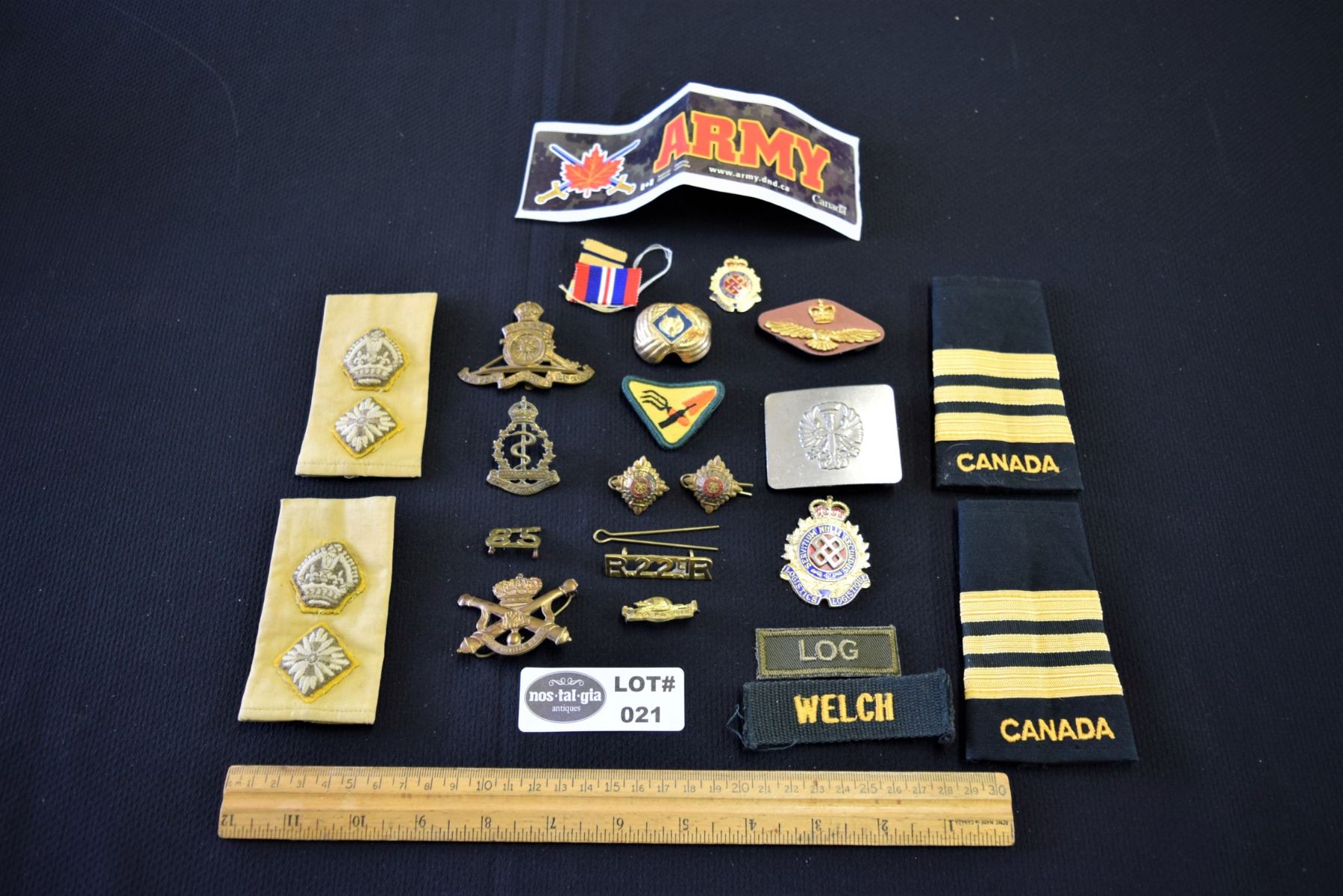 Cap Badges, Shoulder Titles, Slip Ons, Boy Scout Scarf Holder, Belt Buckle, Etc.