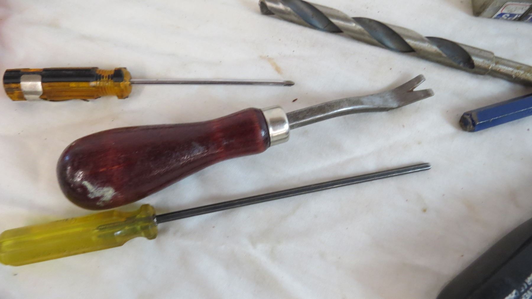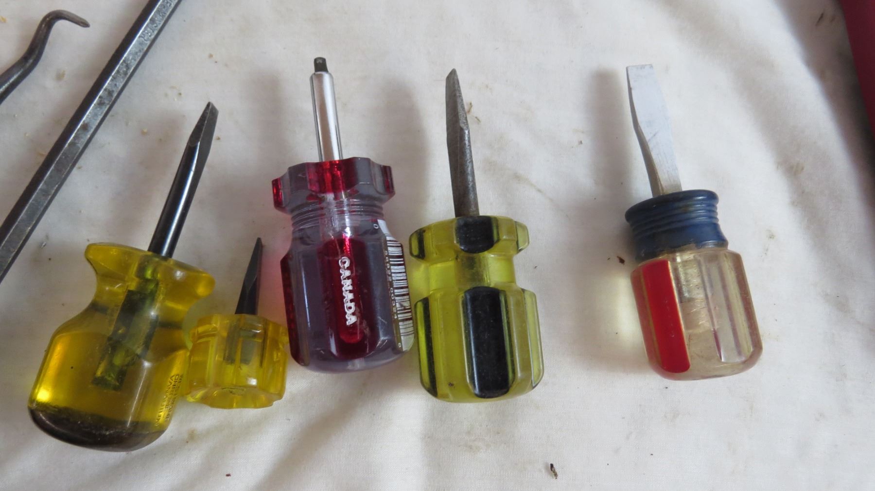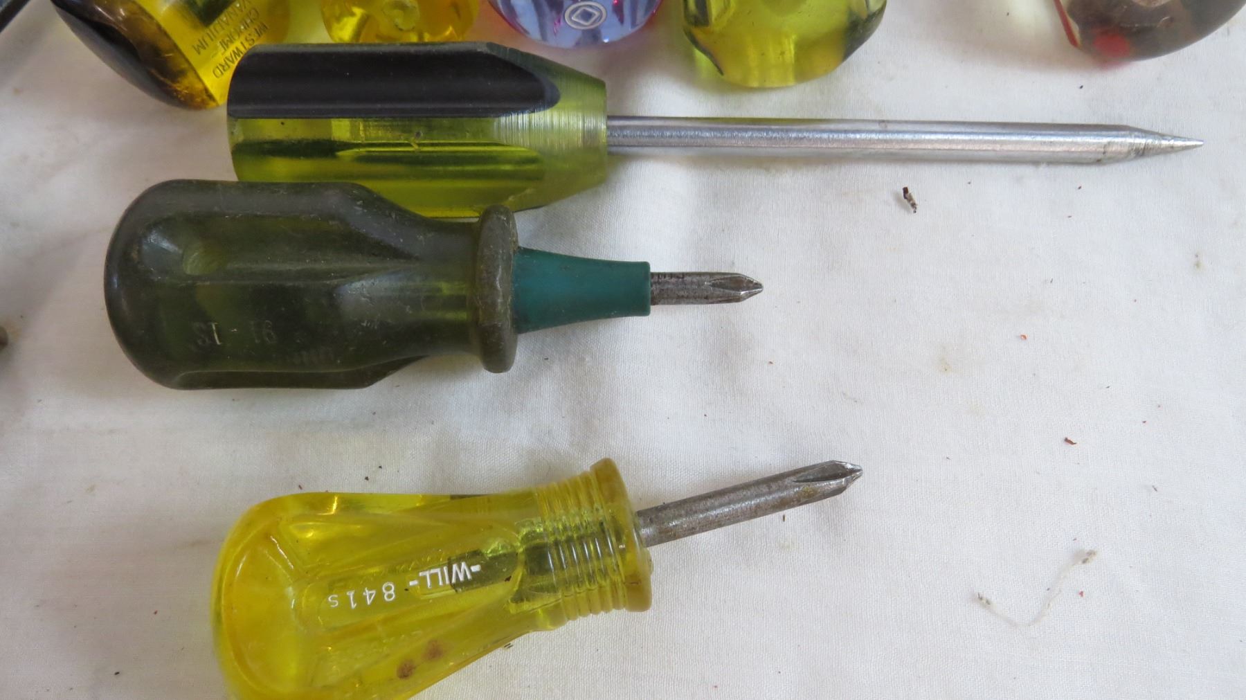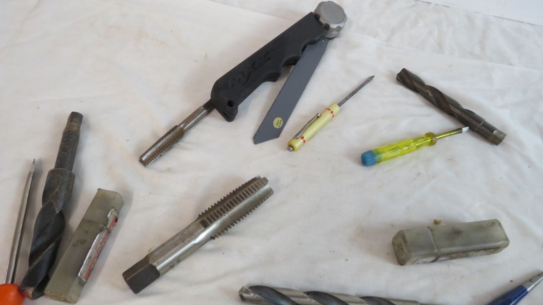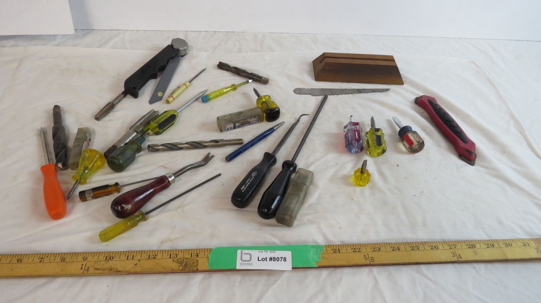 Assorted Mini Screwdrivers with big drill bits and saw blade