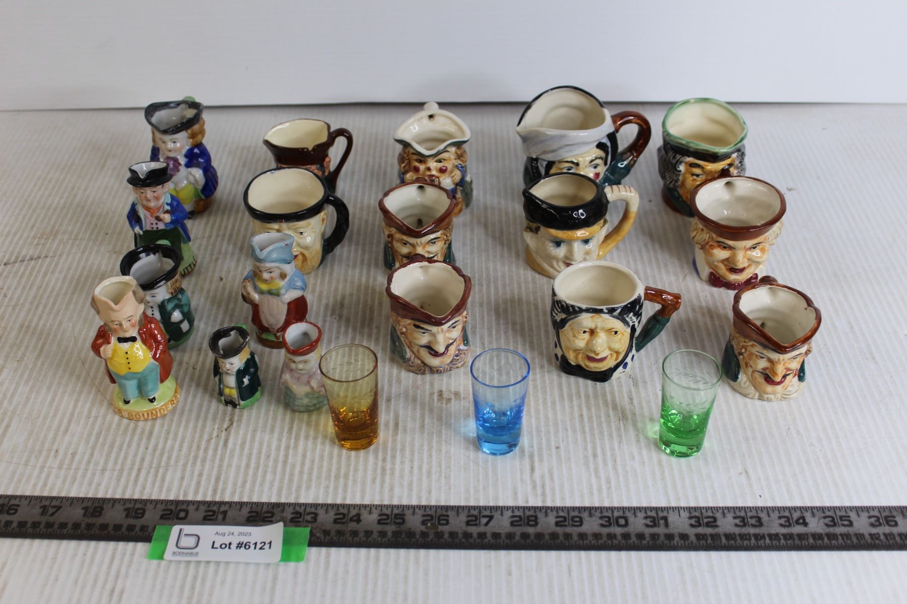 Assorted Miniature Toby Mugs/Pitchers, (3) Shot Glasses