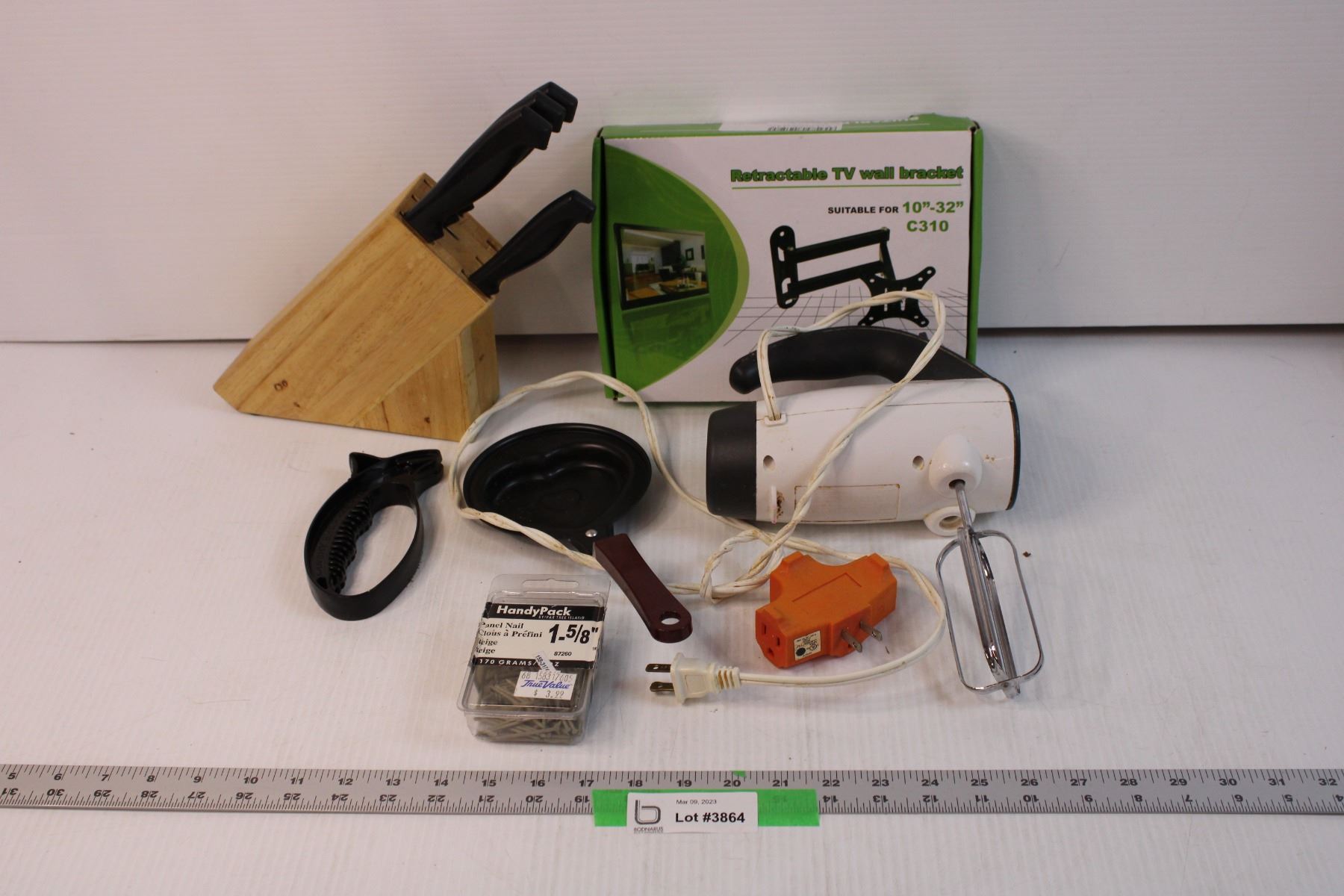 Assorted Misc. Items - TV Wall Bracket, Knife Set (Some Knives Missing)