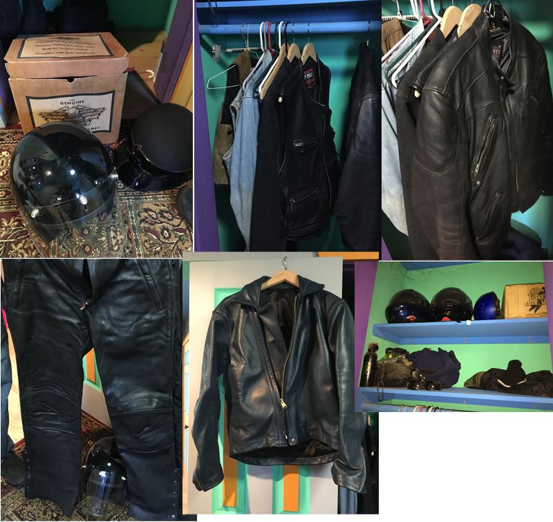 Assorted Motorcycle Gear includes motorcycle leathers, chaps, jack, vests, helmets, etc. This lot can be picked up in Woodbury CT for local buyers, or our shipper can pick up and ship to your location.