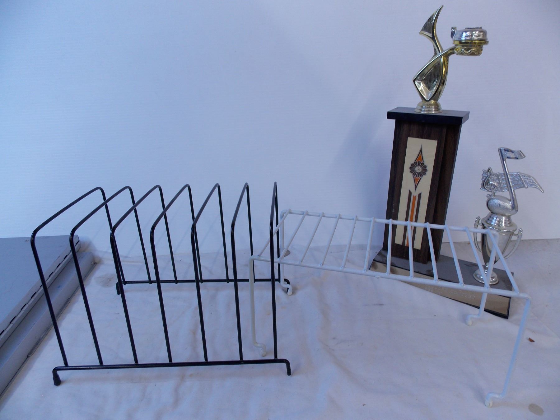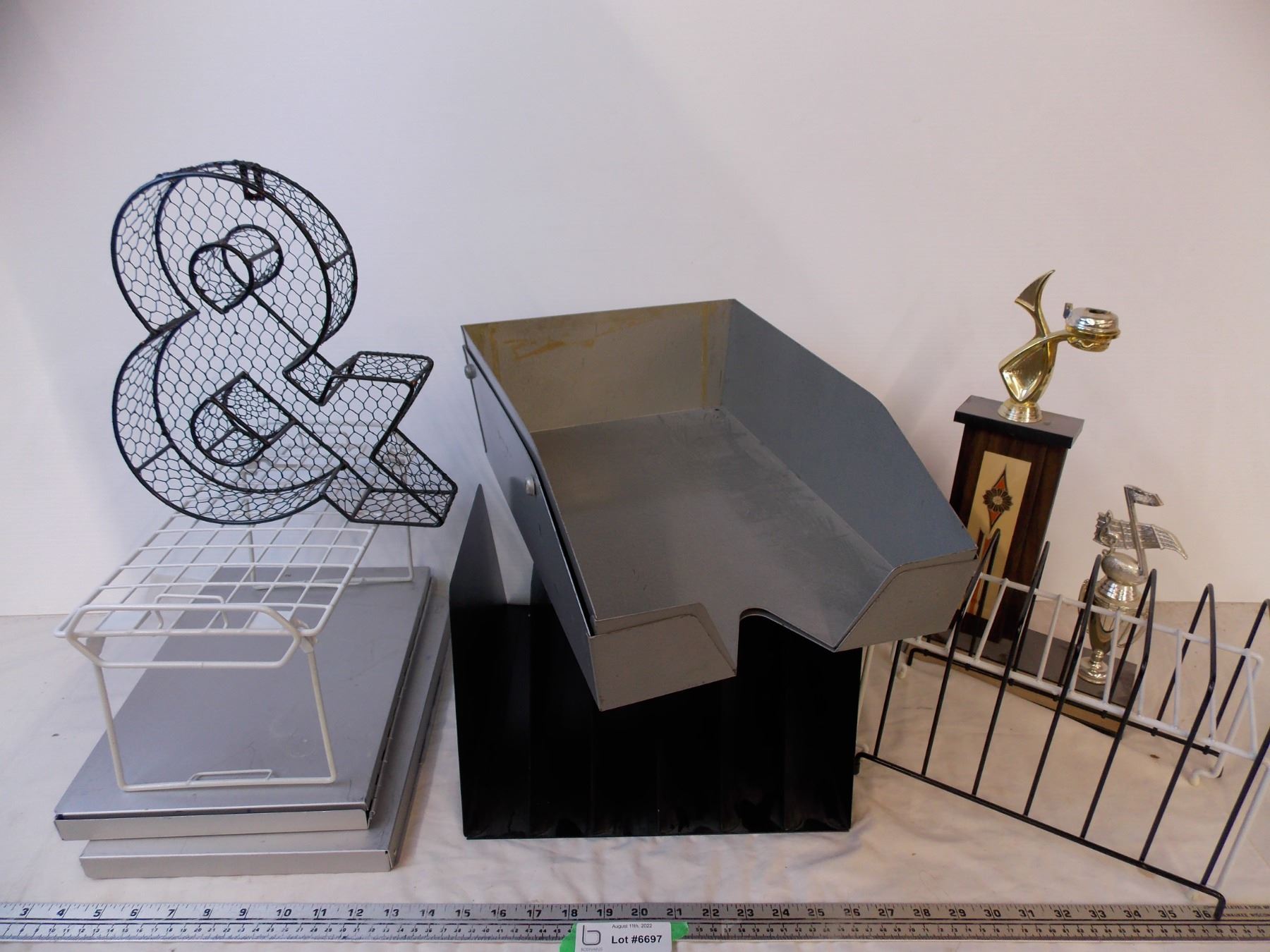 *Assorted Office Storage, (2) Heavy Duty Clipboards + Trophy