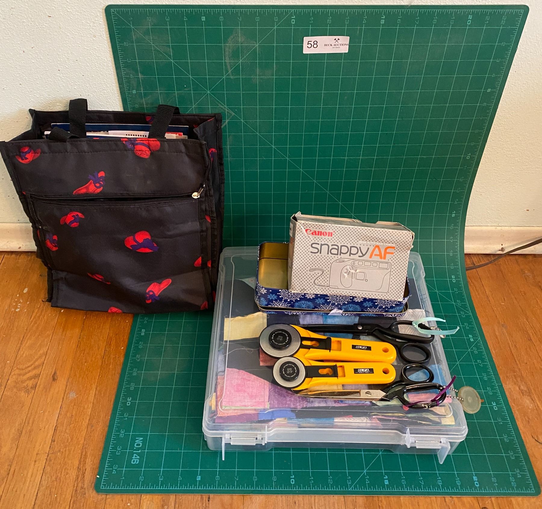 Assorted Olfa Rotary Cutters, Sewing Scissors With Carrying Bag & Cannon Snappy Auto Focus Camera