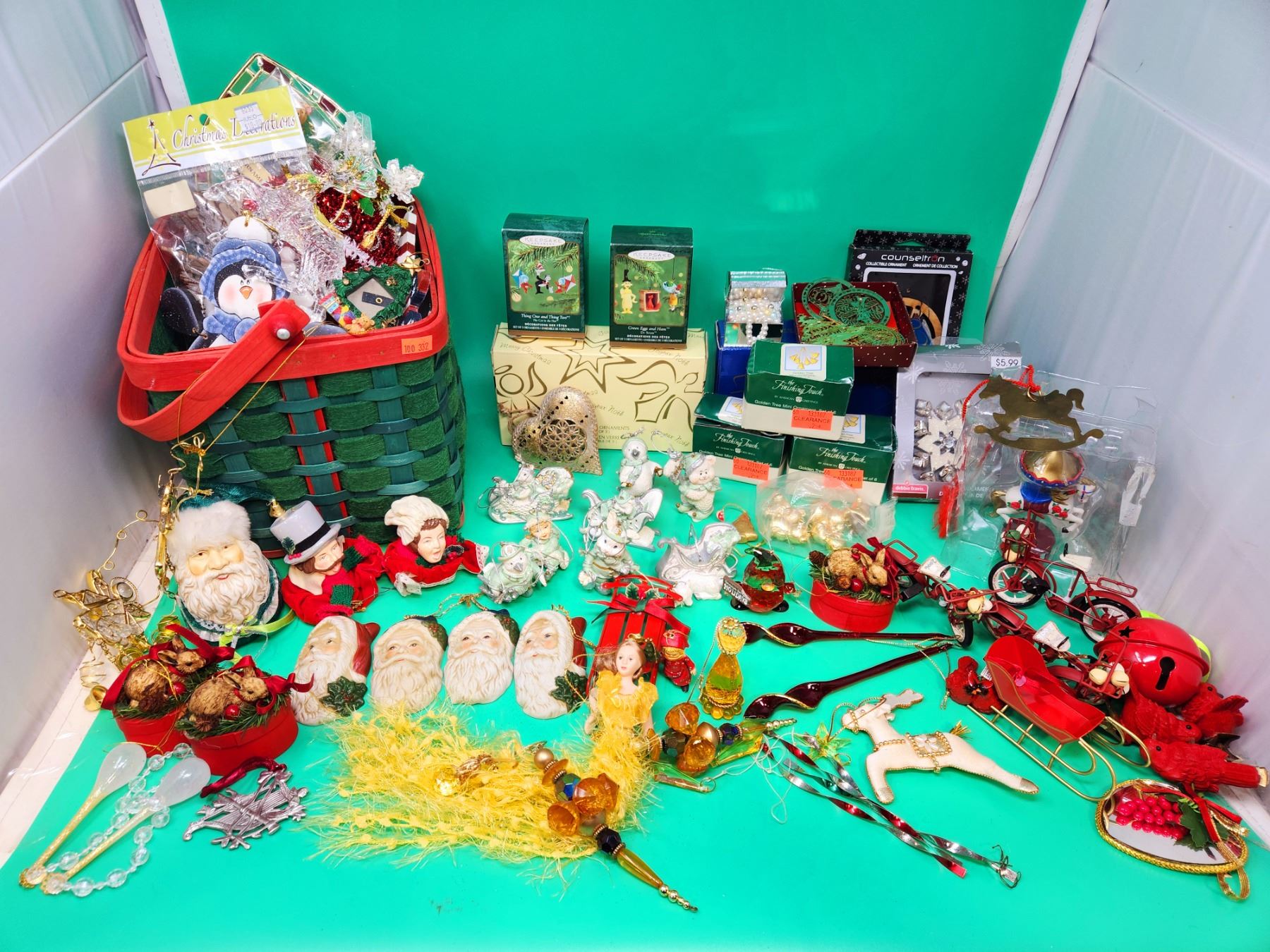 Assorted Ornament & Decor Lot w/ Hallmark Keepsake Dr. Seuss Ornaments, Basket, & More