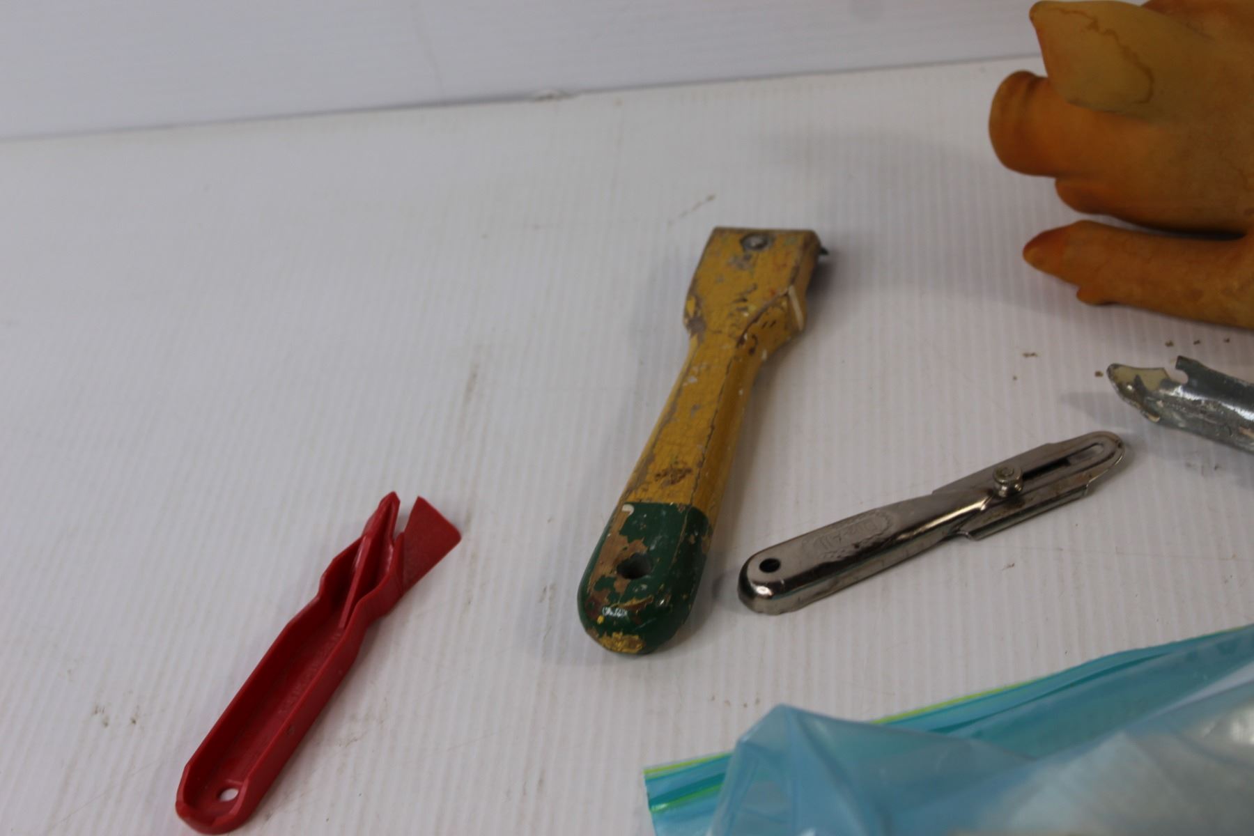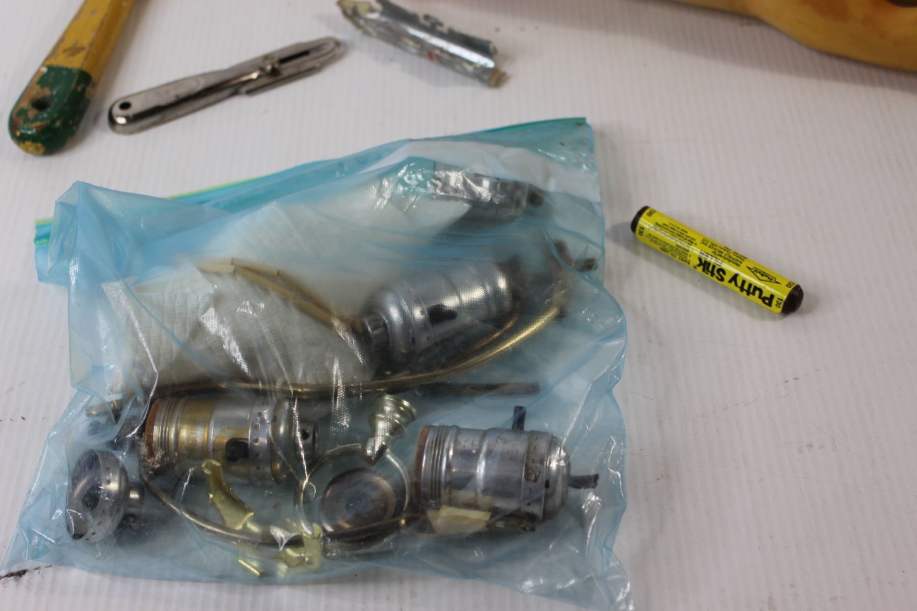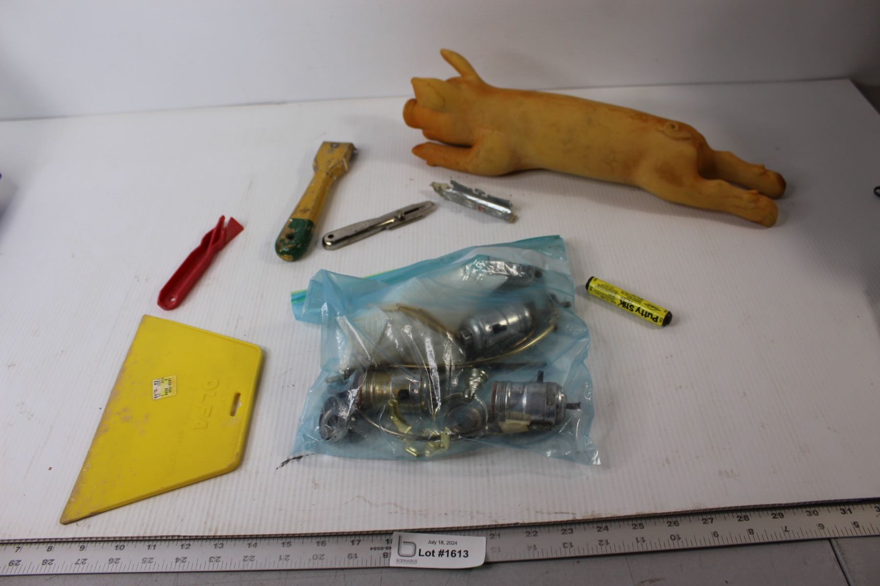Assorted Painters Tools, Lamp Parts, Squishy Rubber Pig