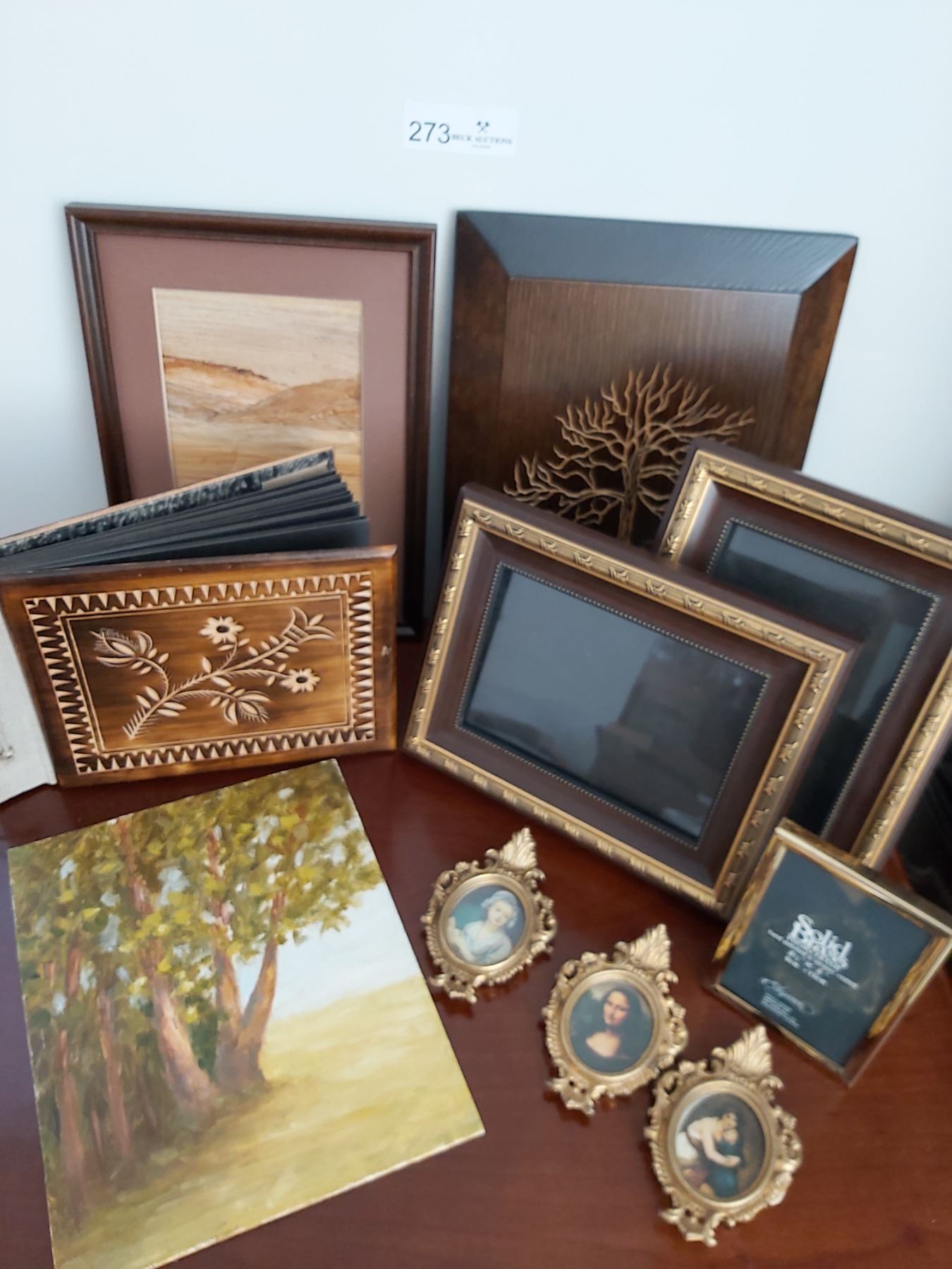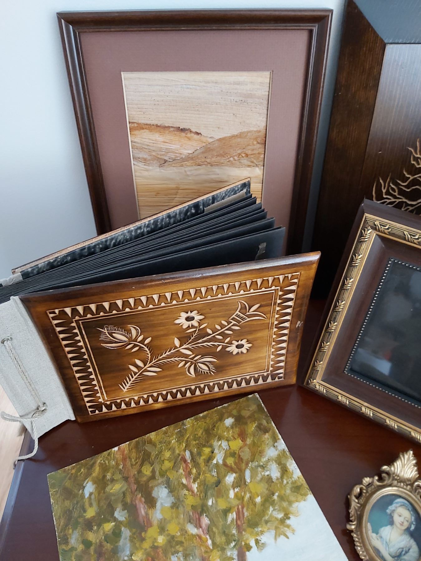 Assorted Picture Frames, Wooden Carved Picture & Wooden Cover Photo Album