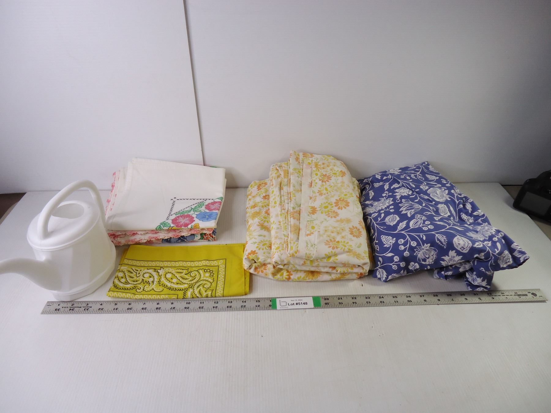 Assorted Pieces of Cloth-Dish Towels,Sheets and watering Can