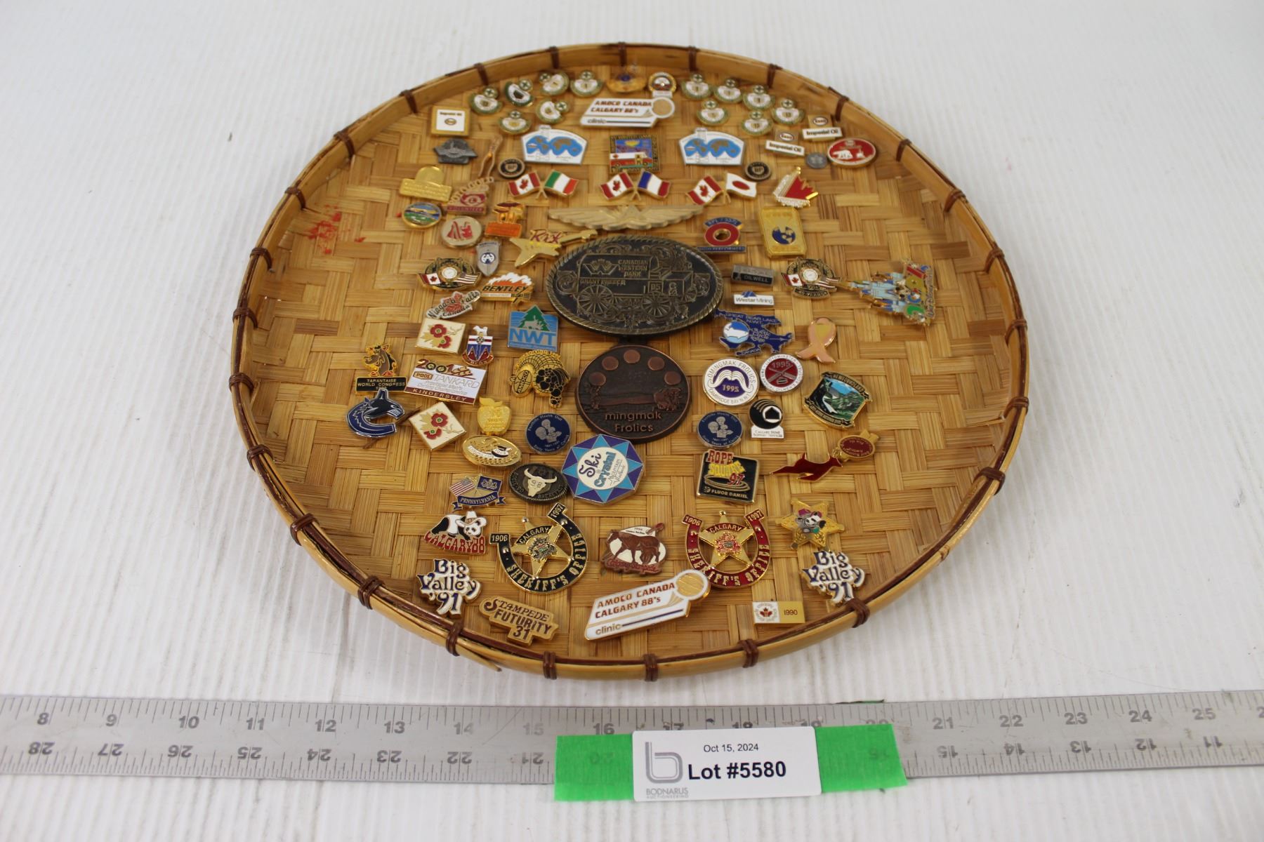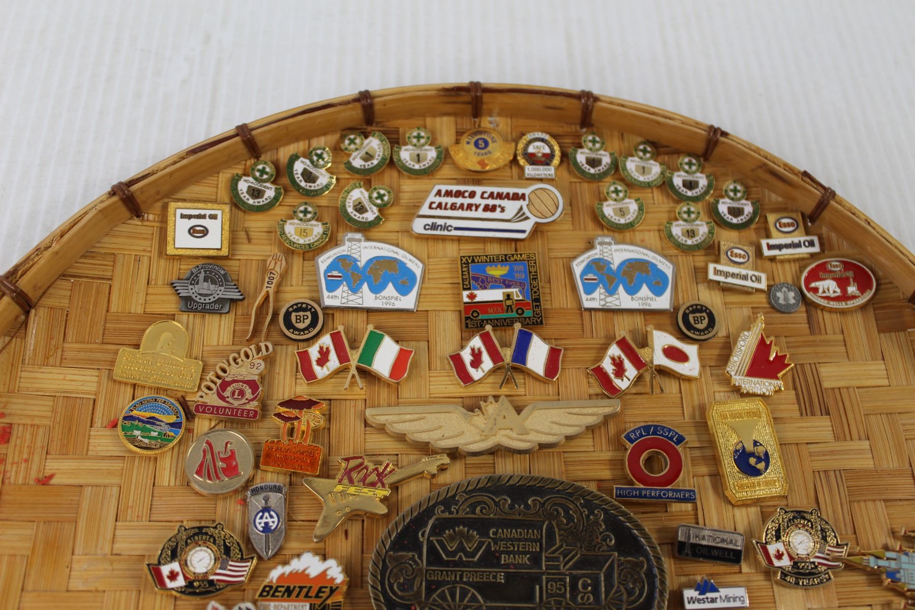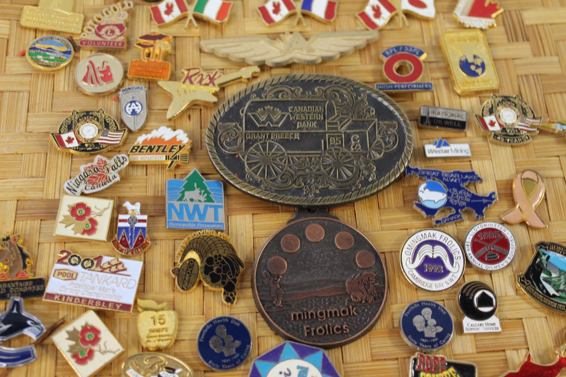 Assorted Pins on Wicker Plaque