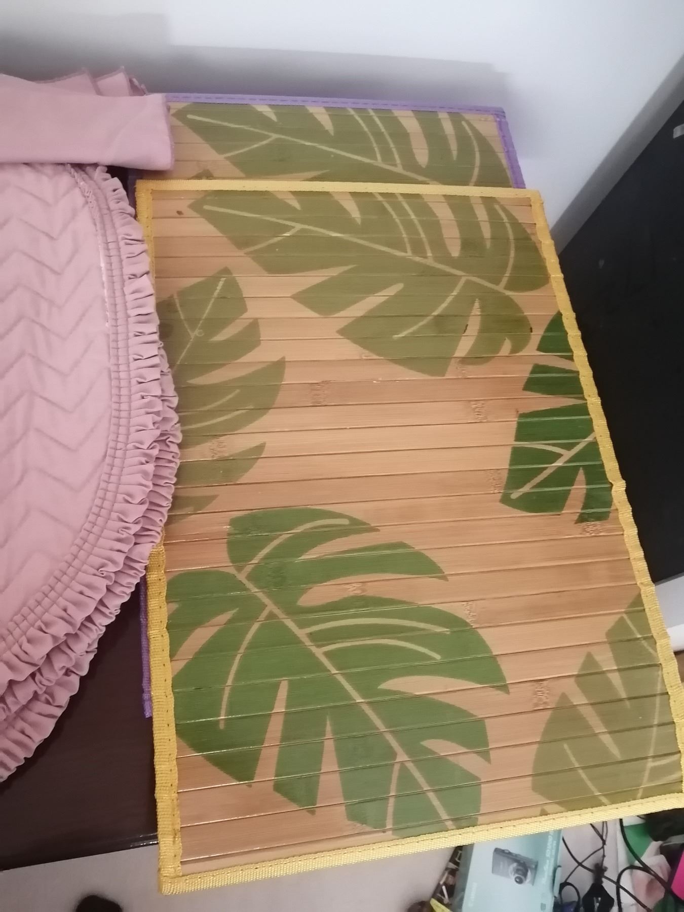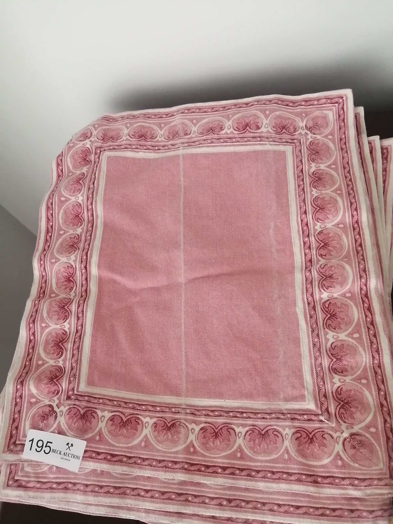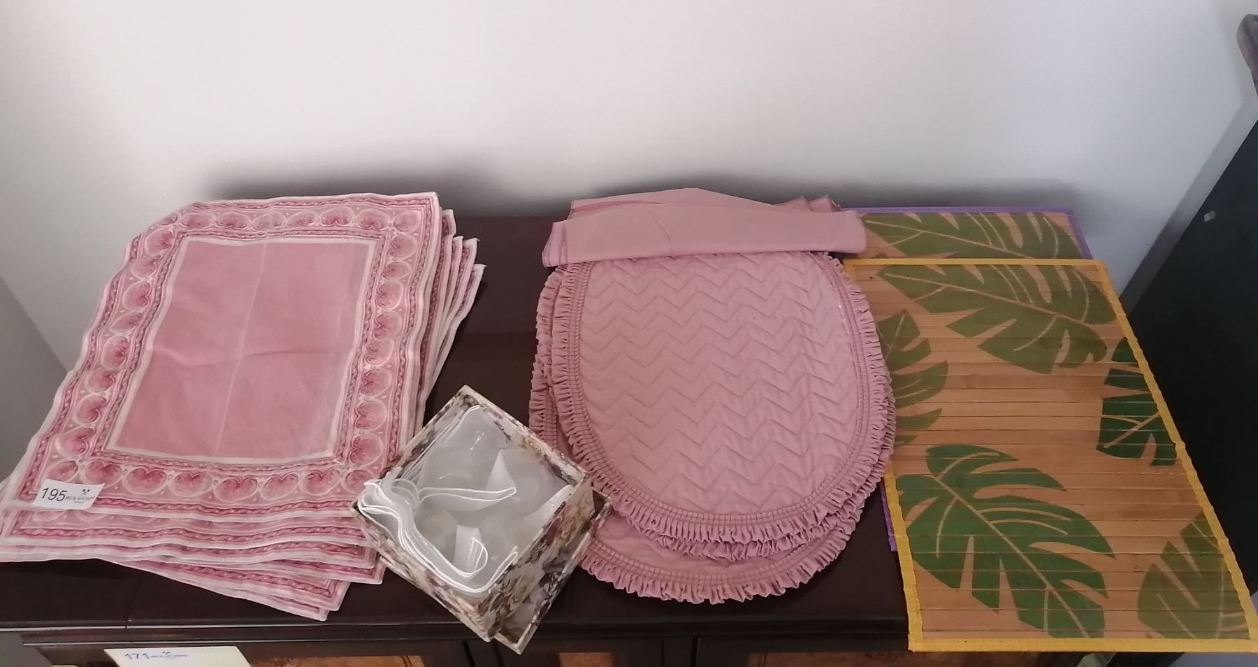 Includes (from left to right) 8 red and white mats, 4 pink mats, and 2 bamboo-style mats