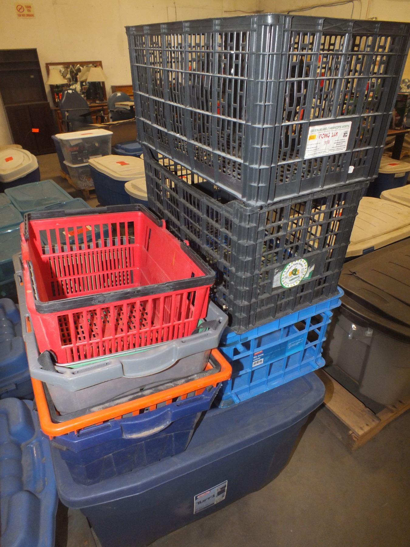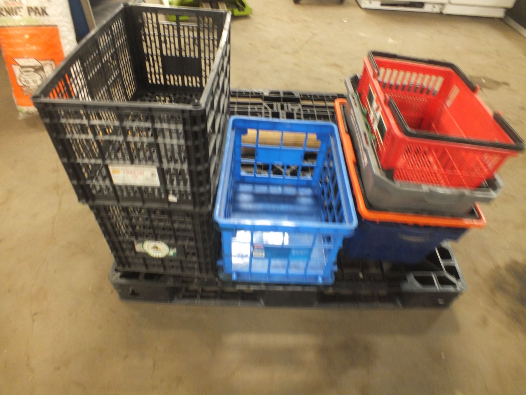 Assorted Plastic Crates & Grocery Baskets...sold as is / where is...used