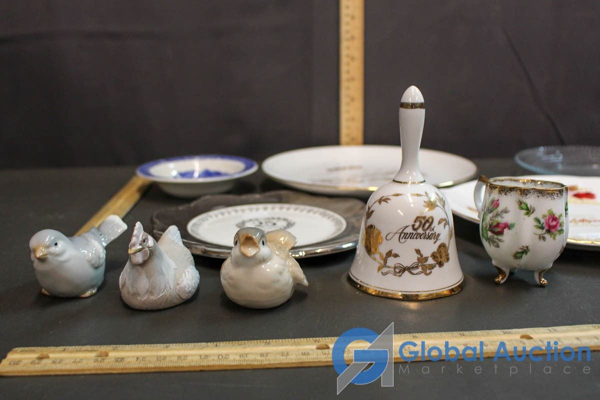 Assorted Plates, Ceramic Bell, Ceramic Birds, Ceramic Cup, etc. (Japan, Royal Winton, Duchess Bone China)