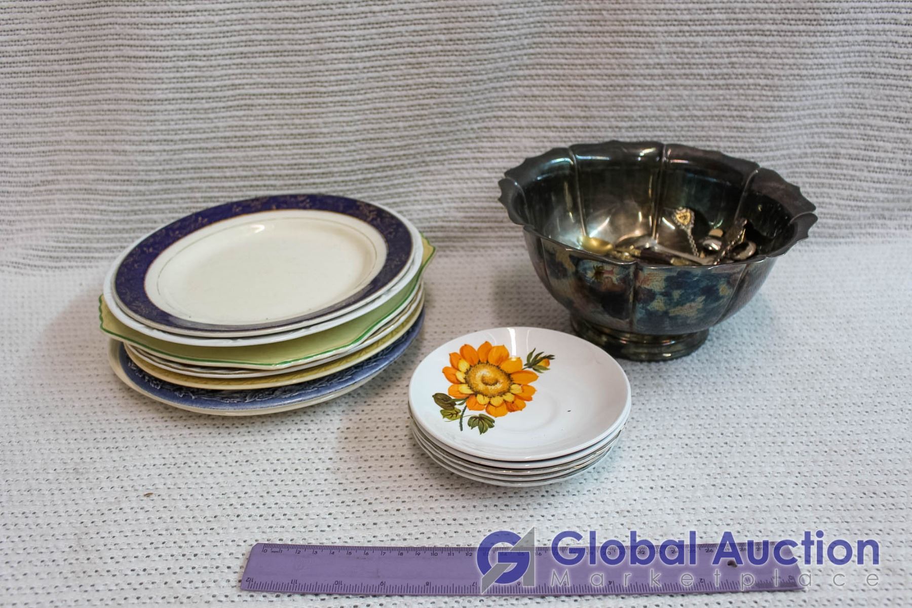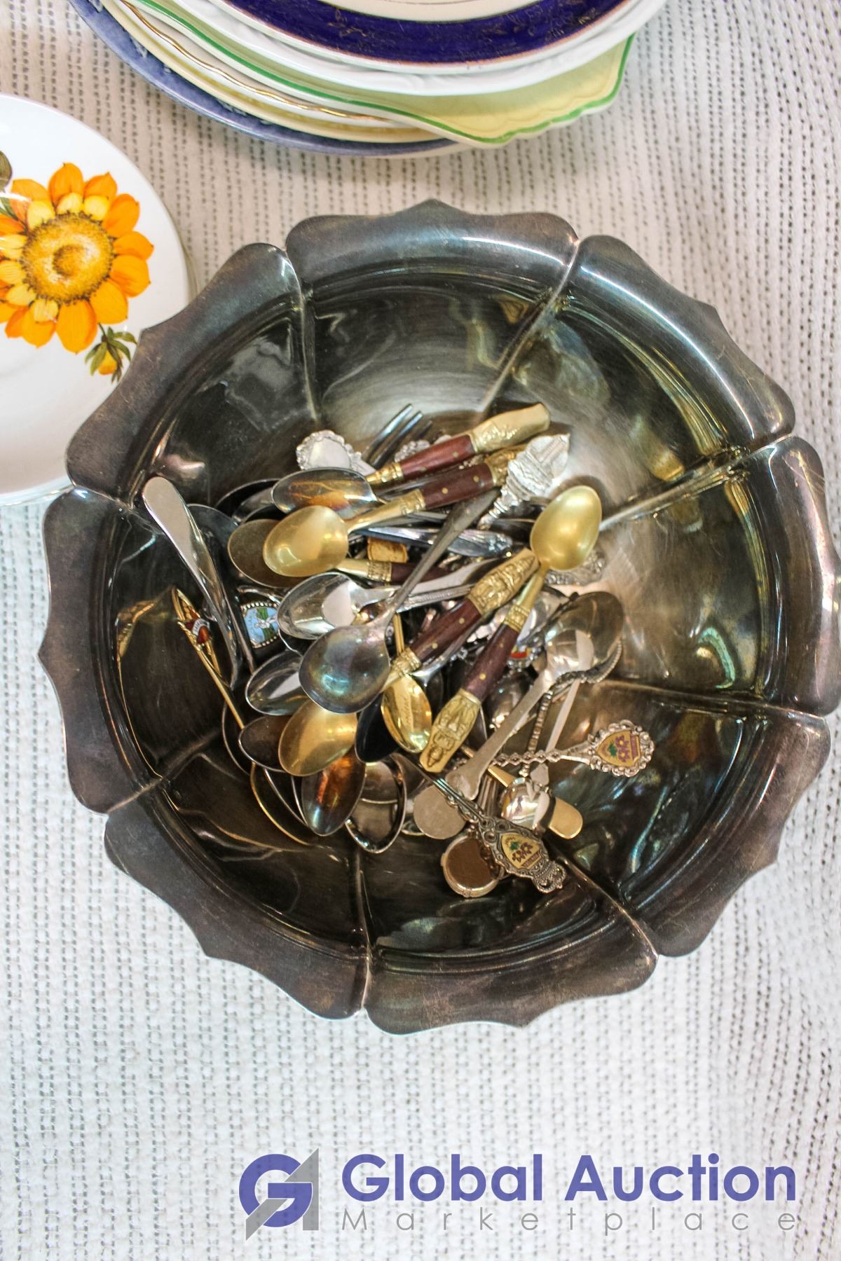 Assorted Plates, Silver Bowl, Collectible Spoons
