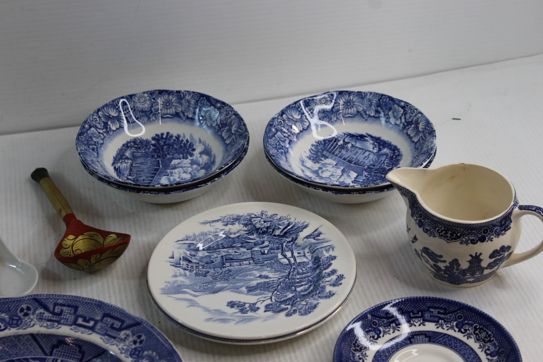 Assorted Plates, Spoons and Creamer