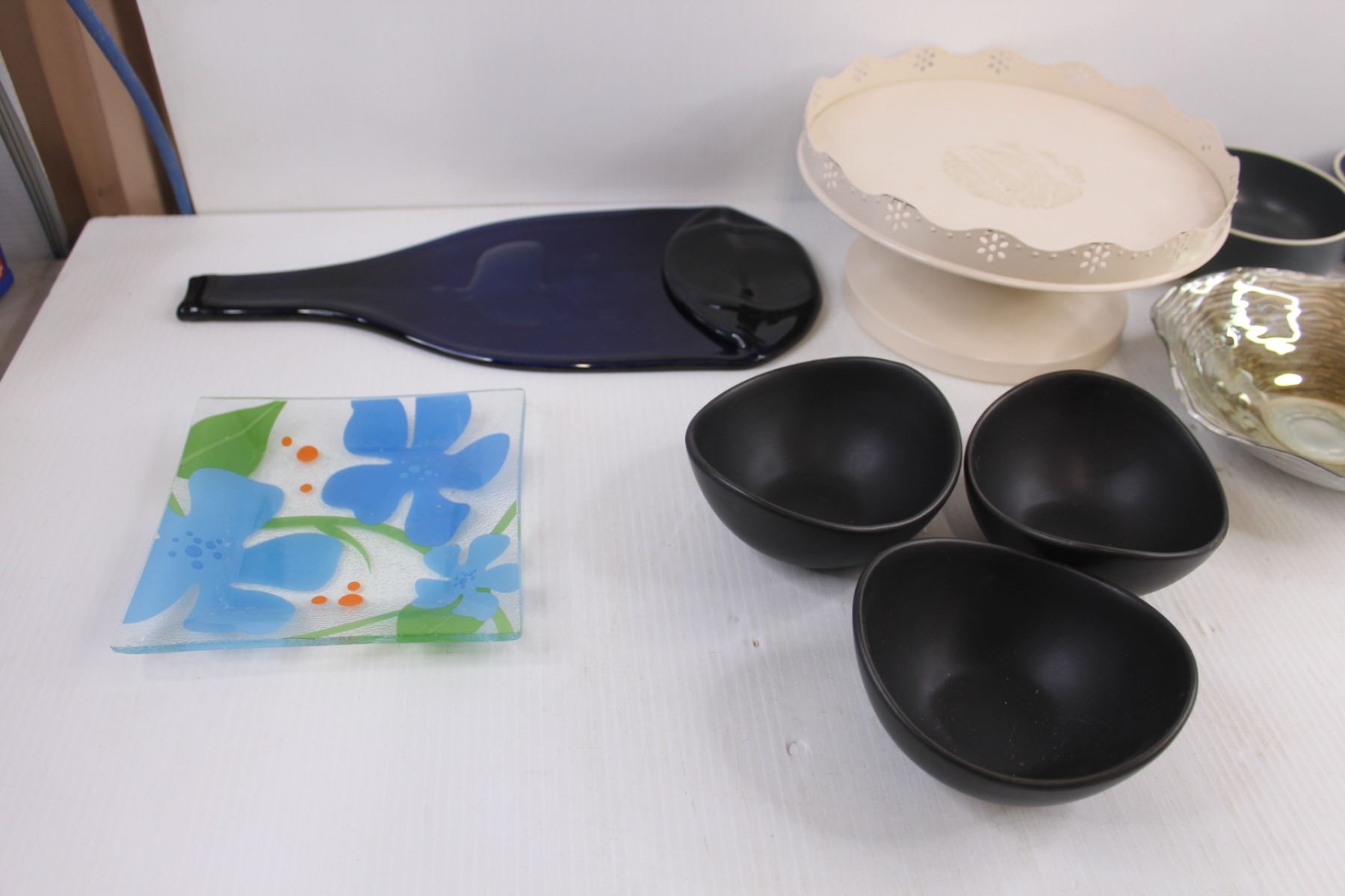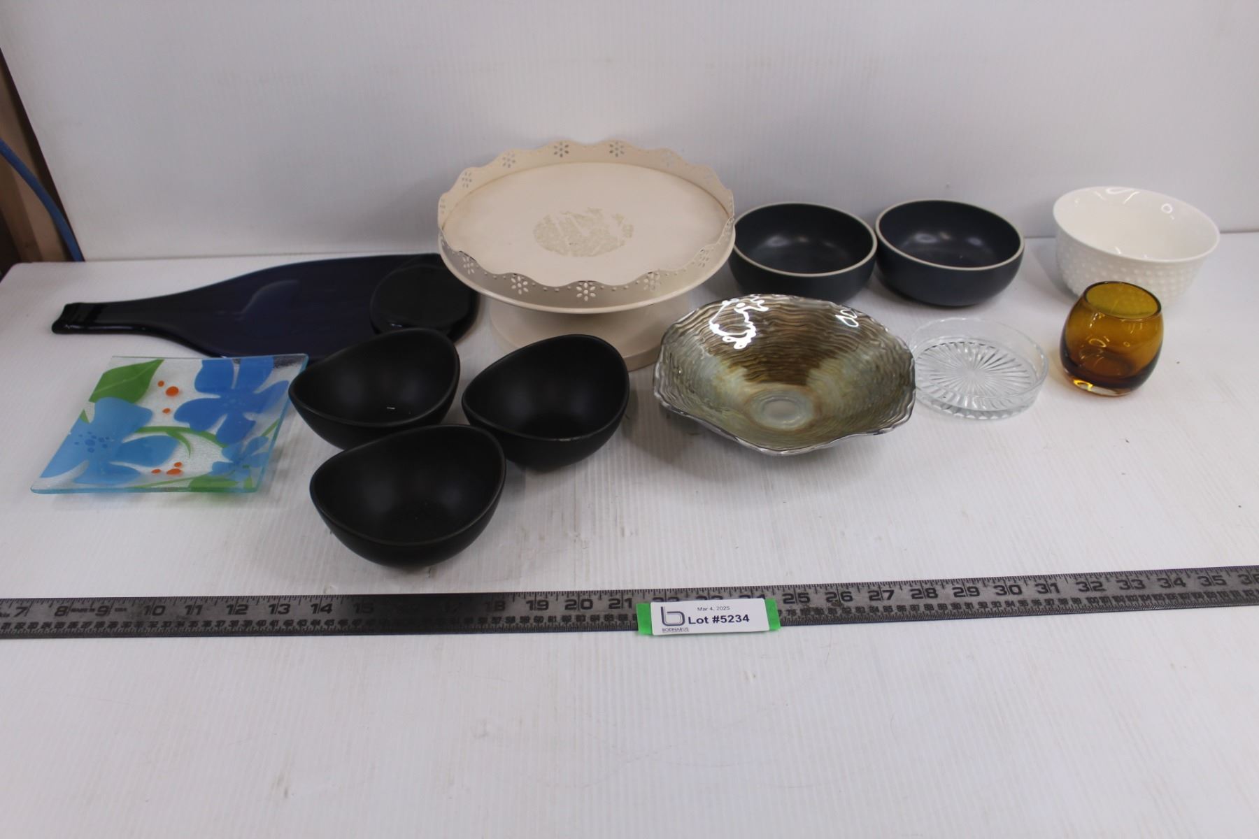 Assorted Platter & Trinket Dishes, Glass Cheese Board, Votive, Misc.