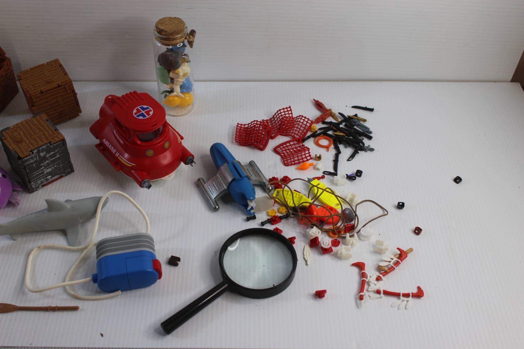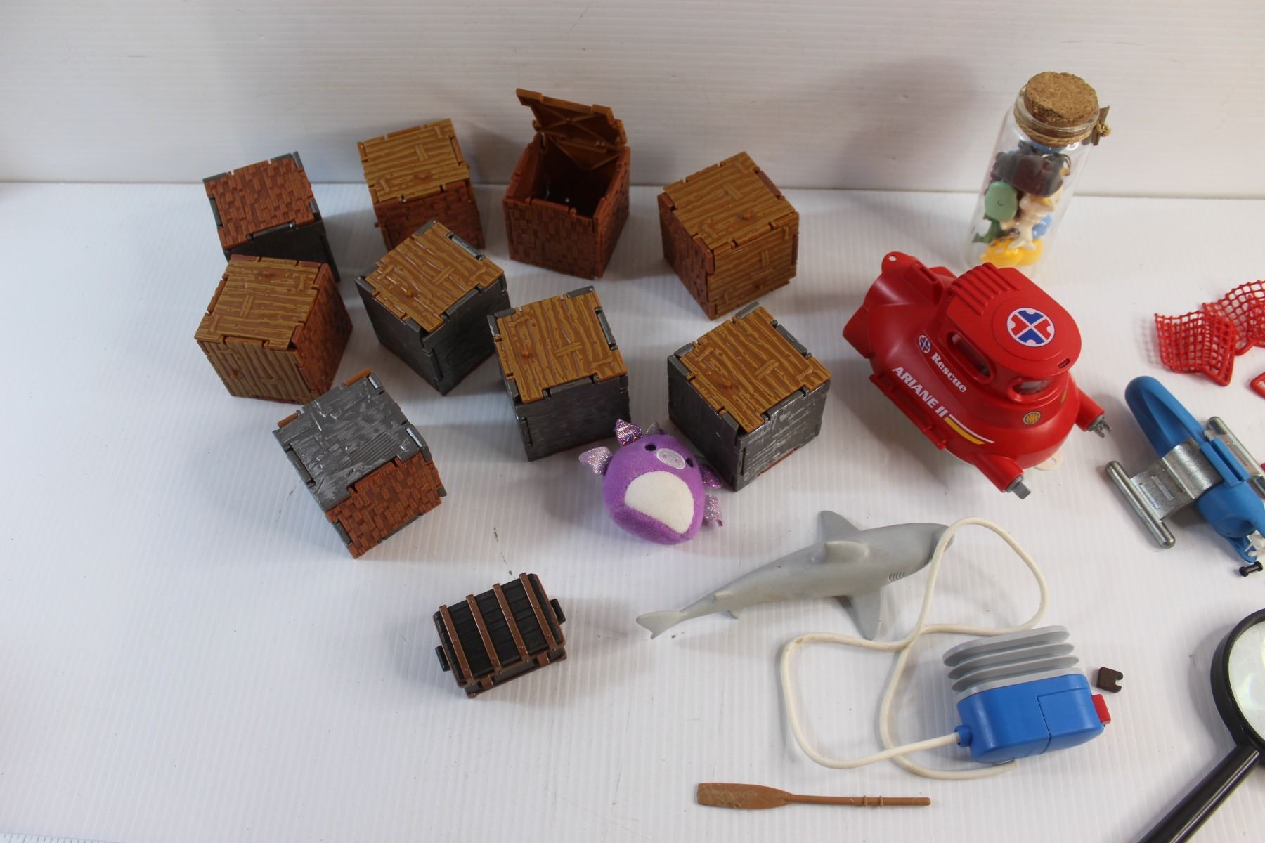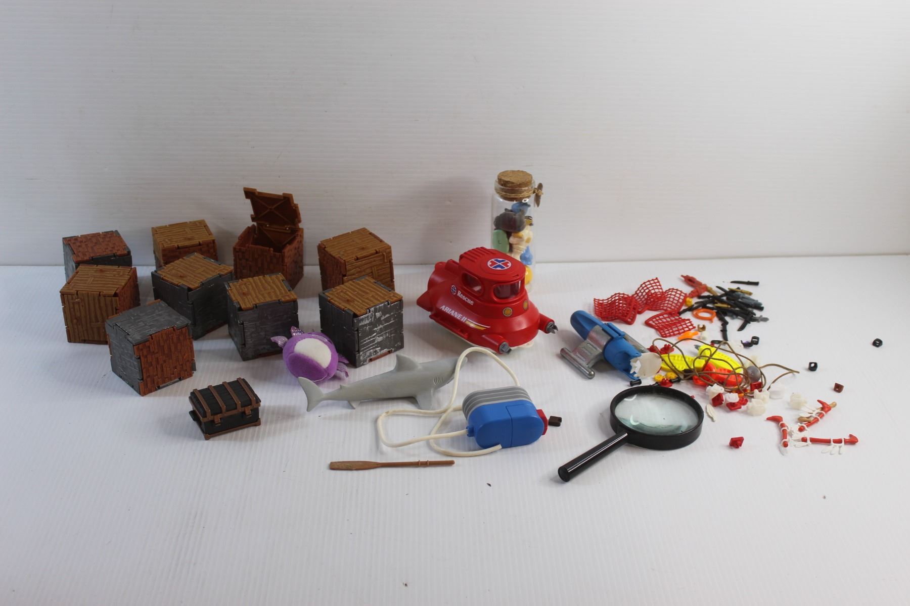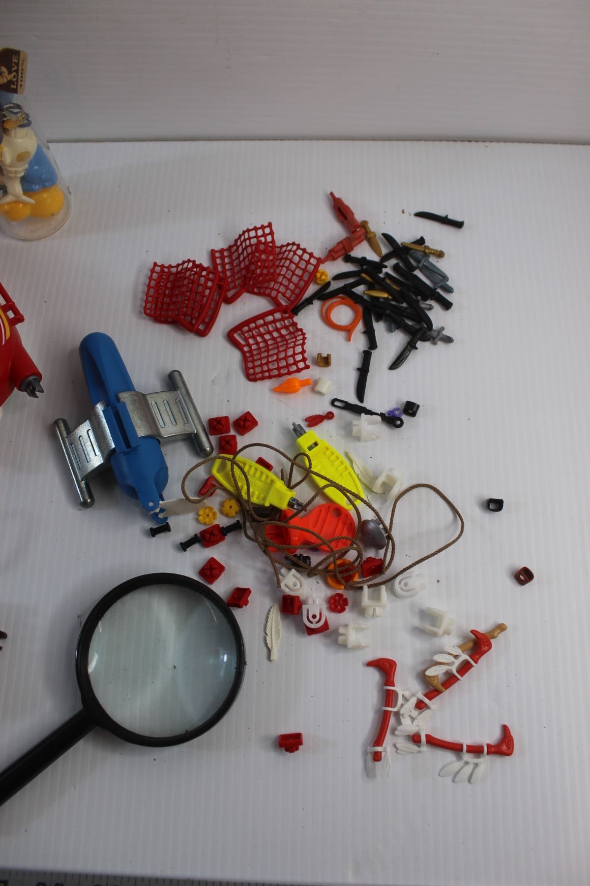 Assorted Play Mobile Toys and Magnifying Glass