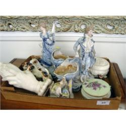 Box Lot - Assorted Porcelain, Victorian Figurines, Covered Boxes, etc.