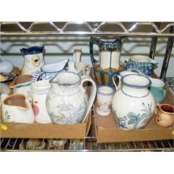 Four Boxes, Assorted Pottery, Including Several Pitchers, Teapots, Creamers, etc.