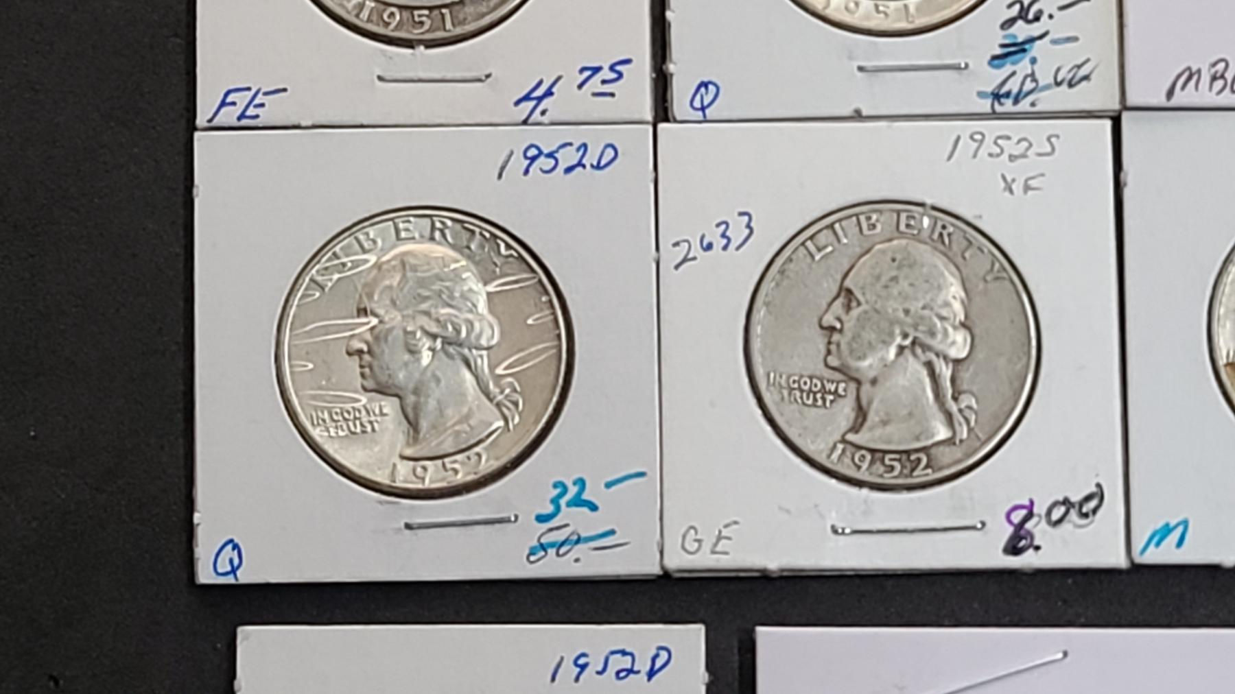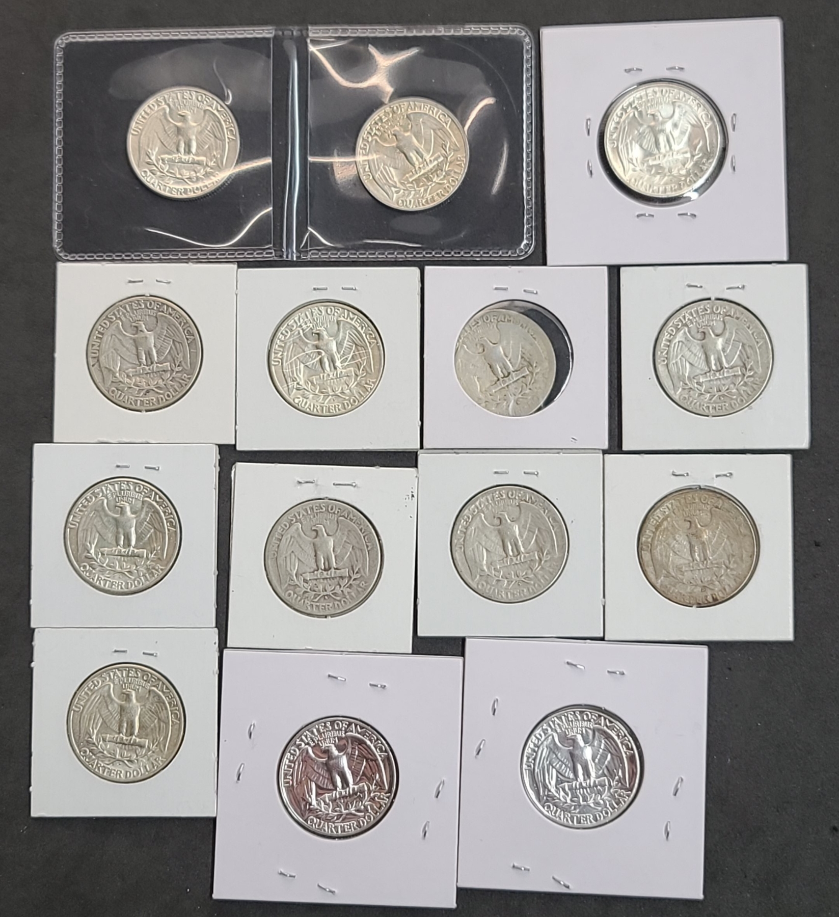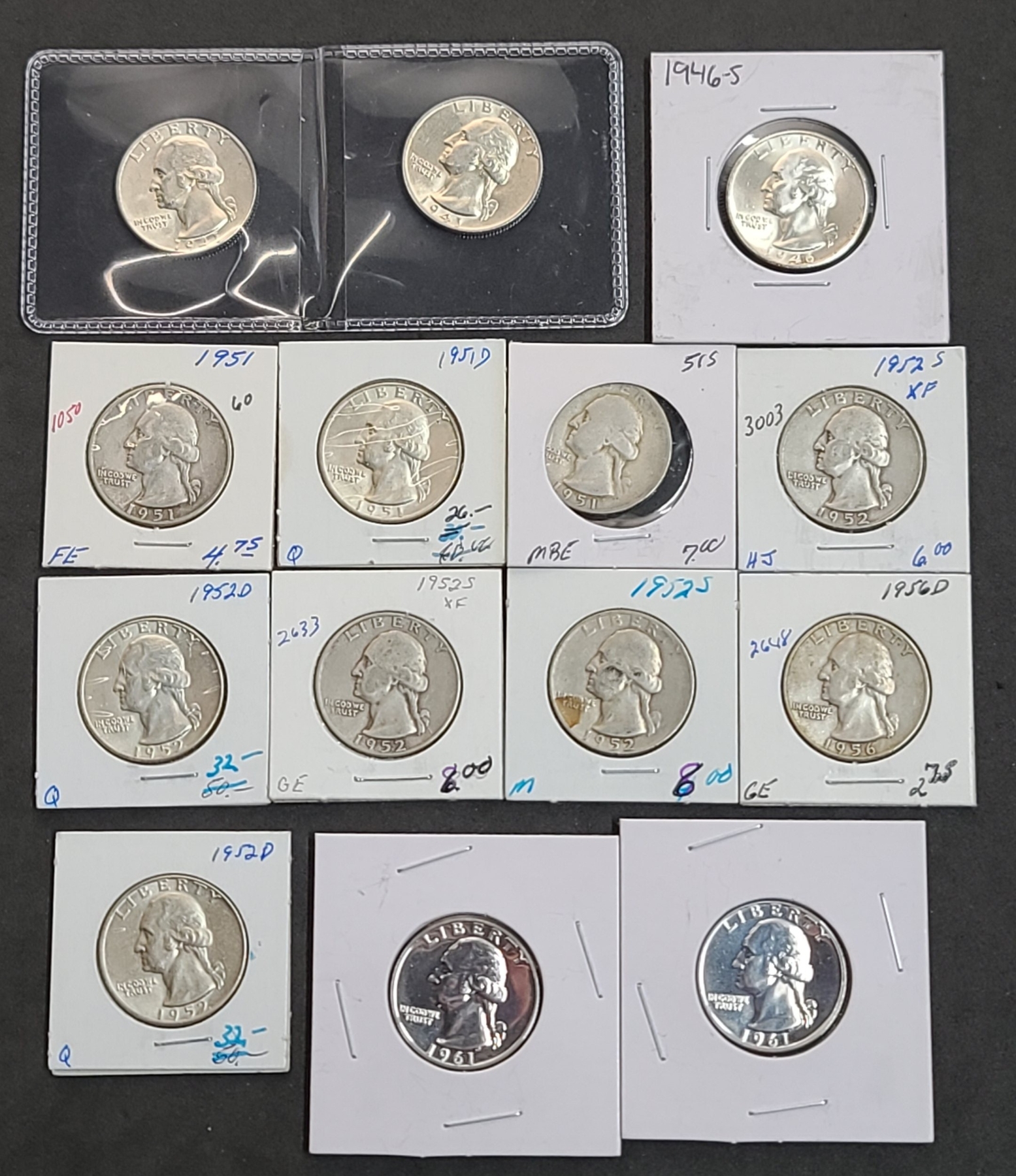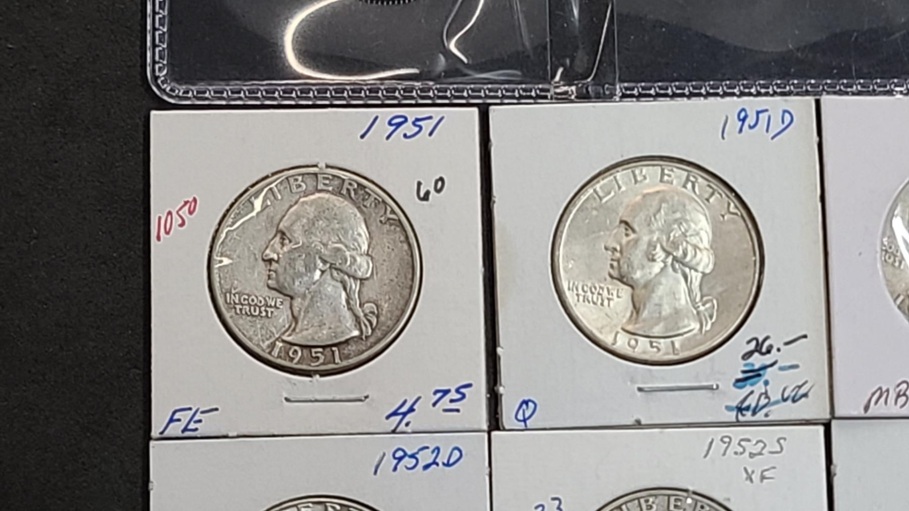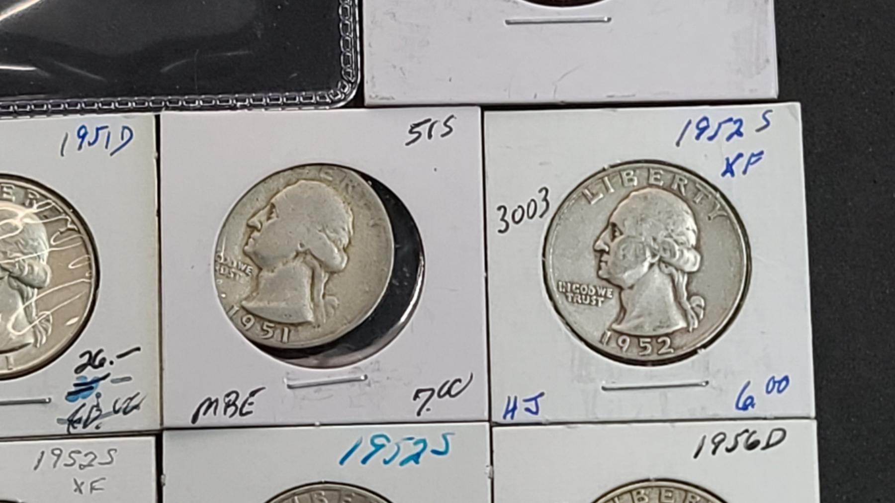 Assorted Pre '64 90% Silver Washington Head Quarters In Coin Holders - Face Value: $3.50