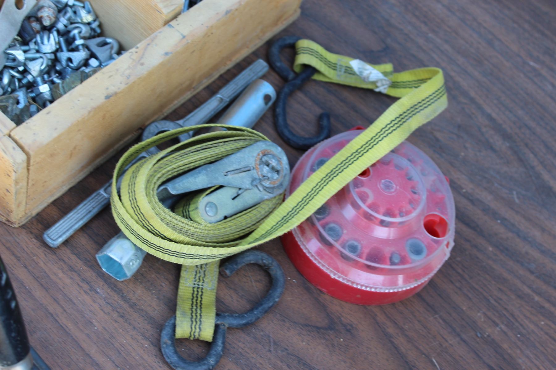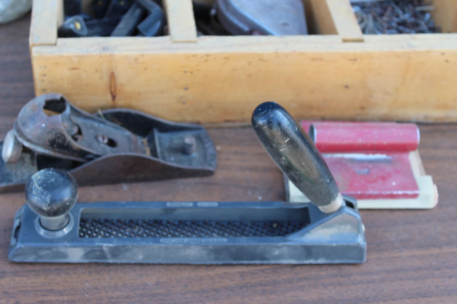 ** Assorted Rasps, Nails, Planes, Bits, Ratchet Strap, Handles and Chain, Misc.