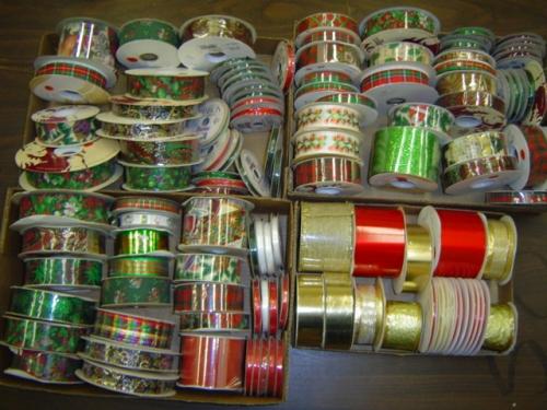 65 open and appx 156 unopened rolls of Xmas Ribbon
