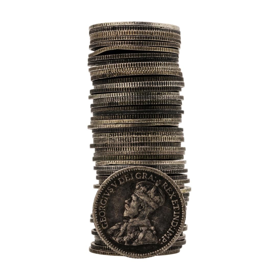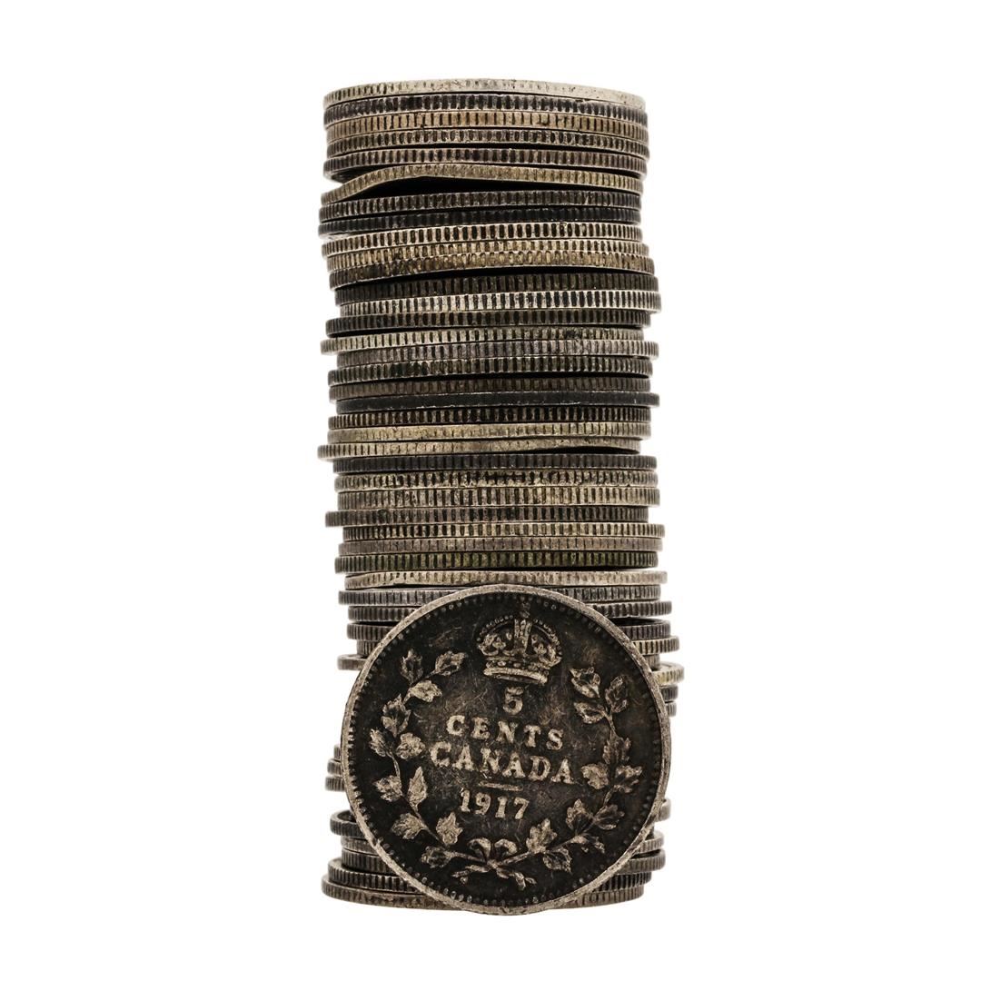 One Assorted Roll of (50) 1858-1921 Canadian Nickels.
