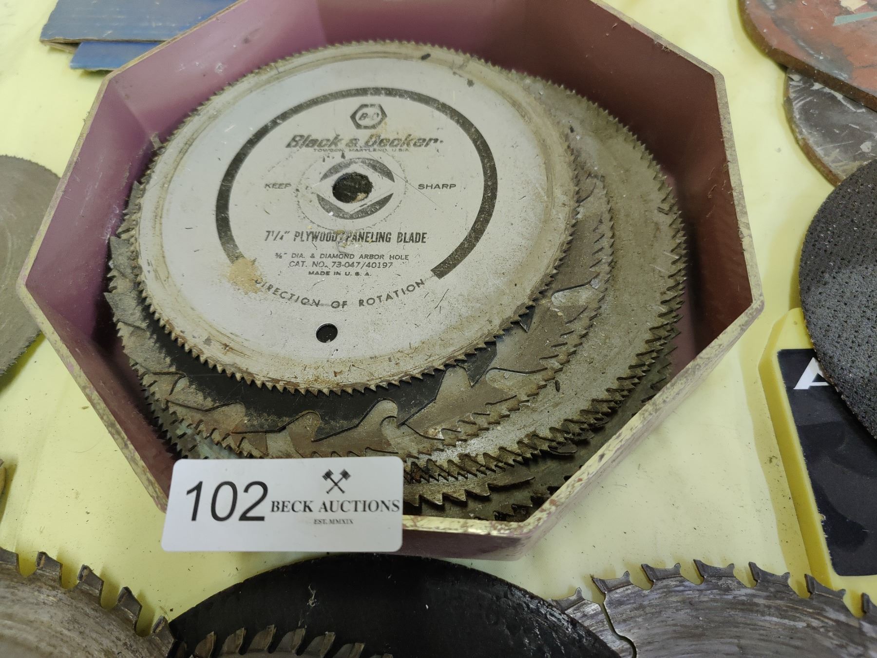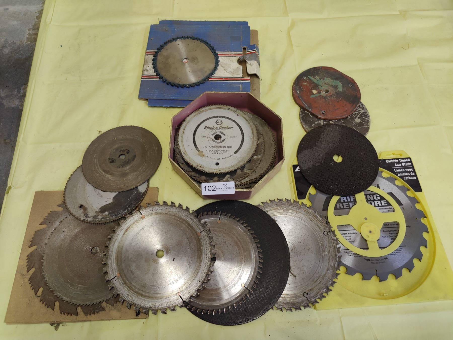 Large assortment of various saw blades and grinding discs