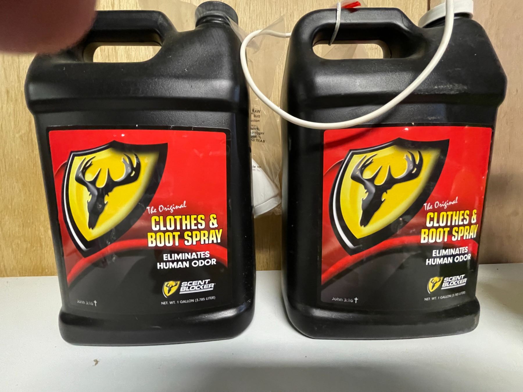 2 - 1 gallon jugs of Scent Blocker Clothers & Boot Spray (1 jug may be slightly used)