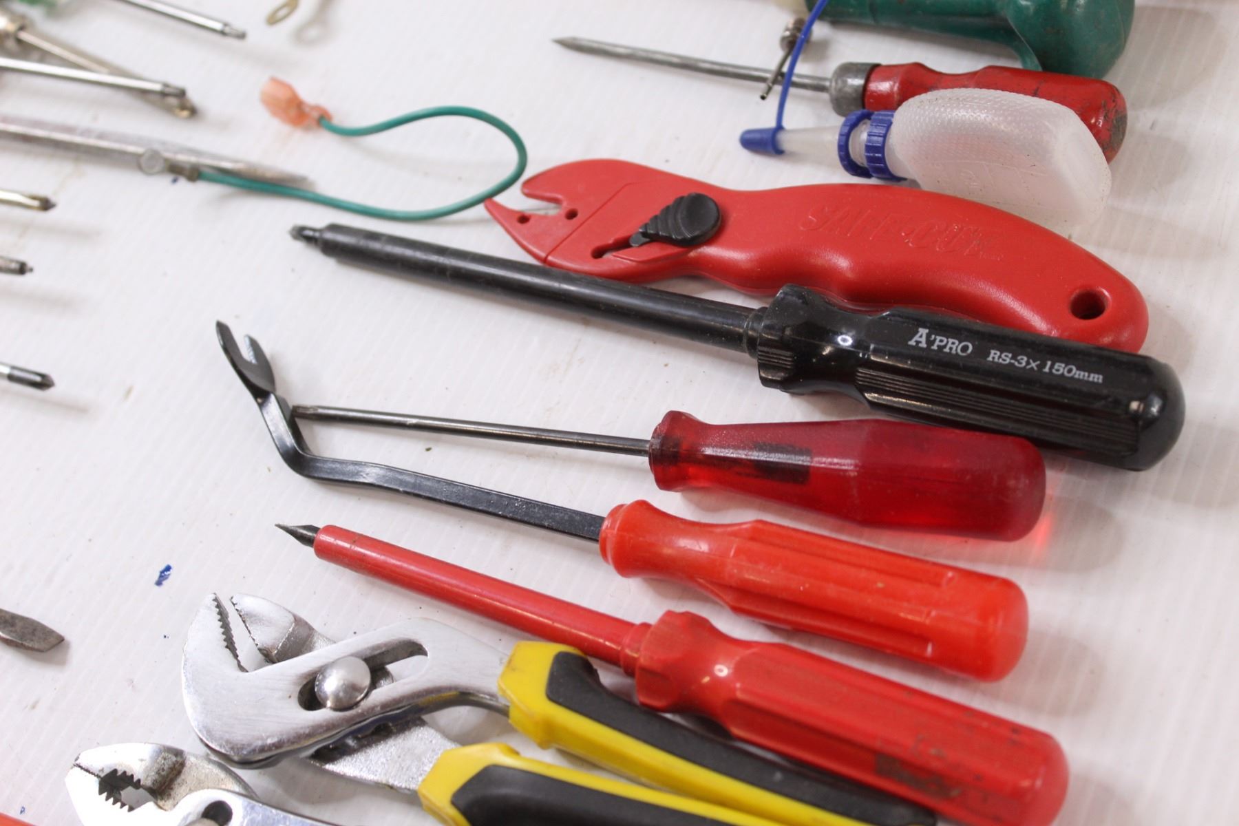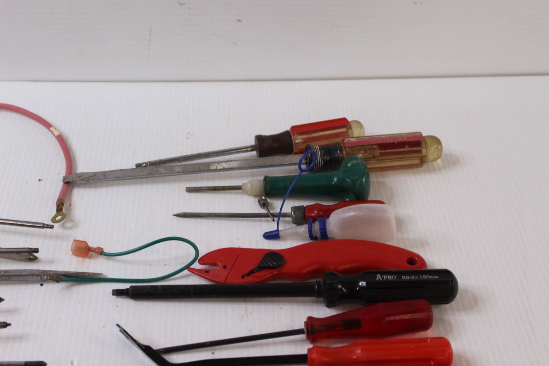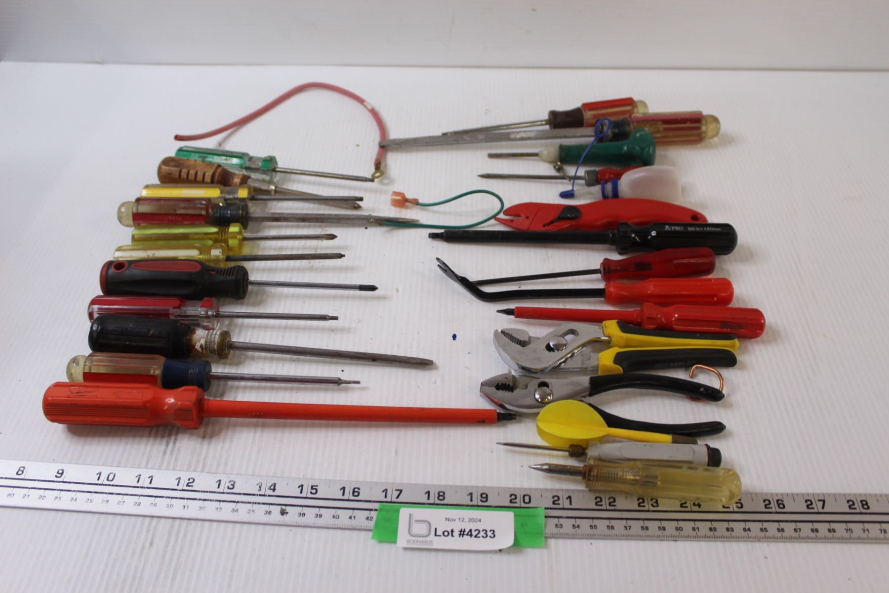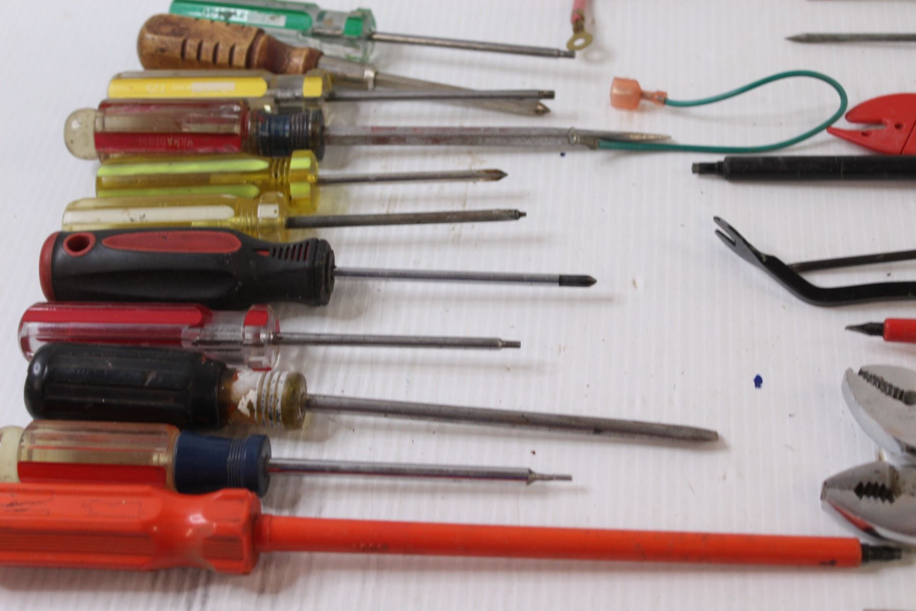 Assorted Screwdrivers, Wires, Pliers, Plastic Push Pin Remover Tool, Misc.