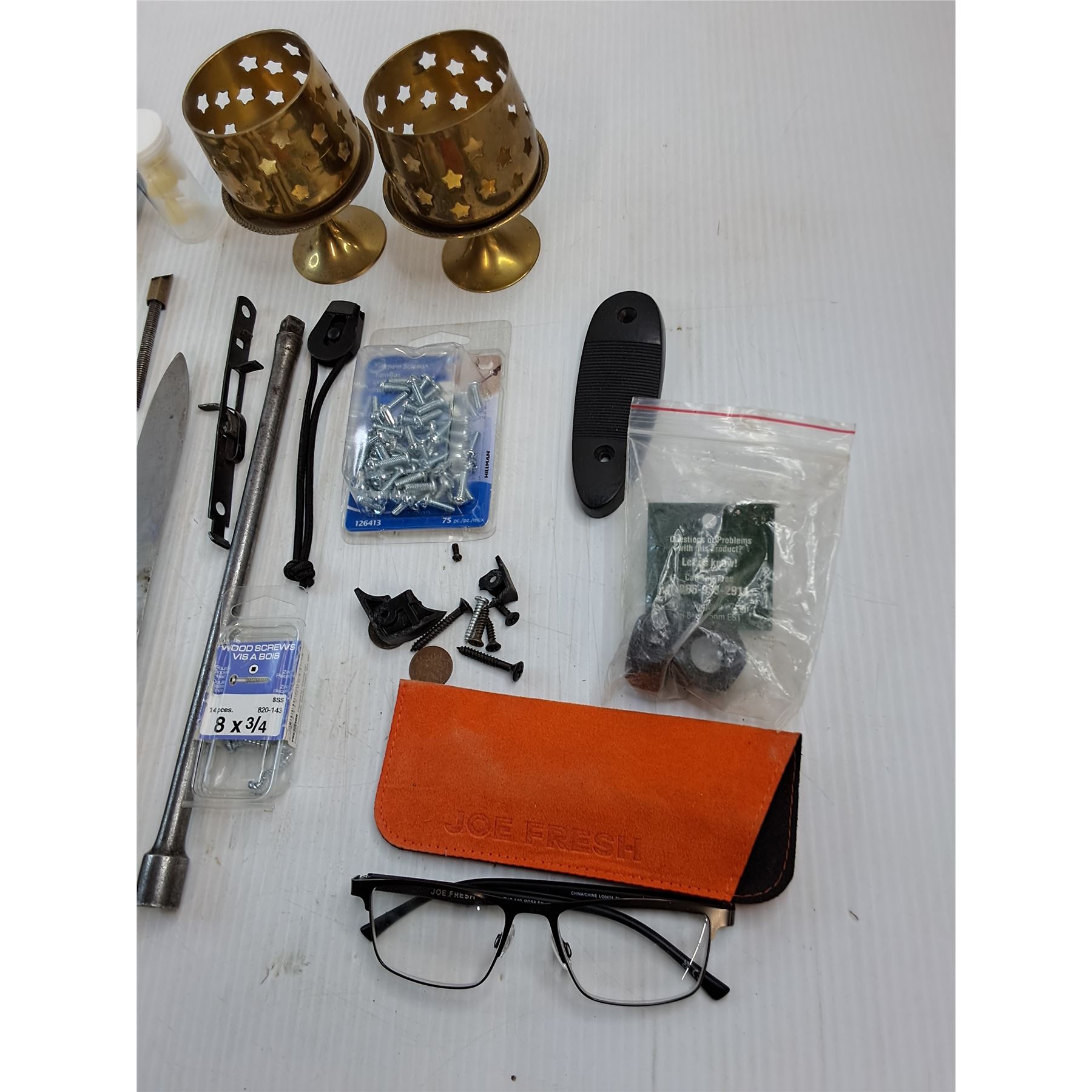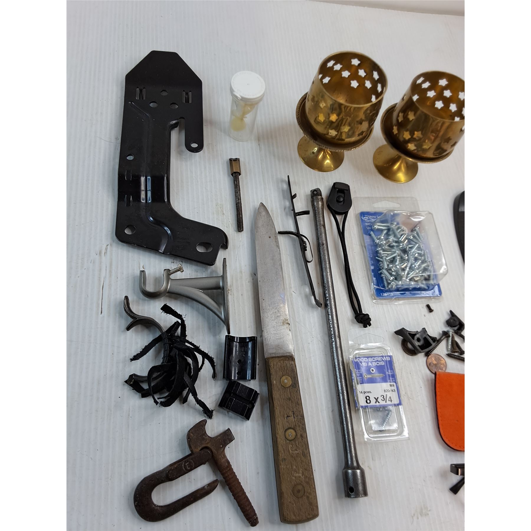 Assorted Screws, Glasses, Candle Holders, Hardware, Misc.