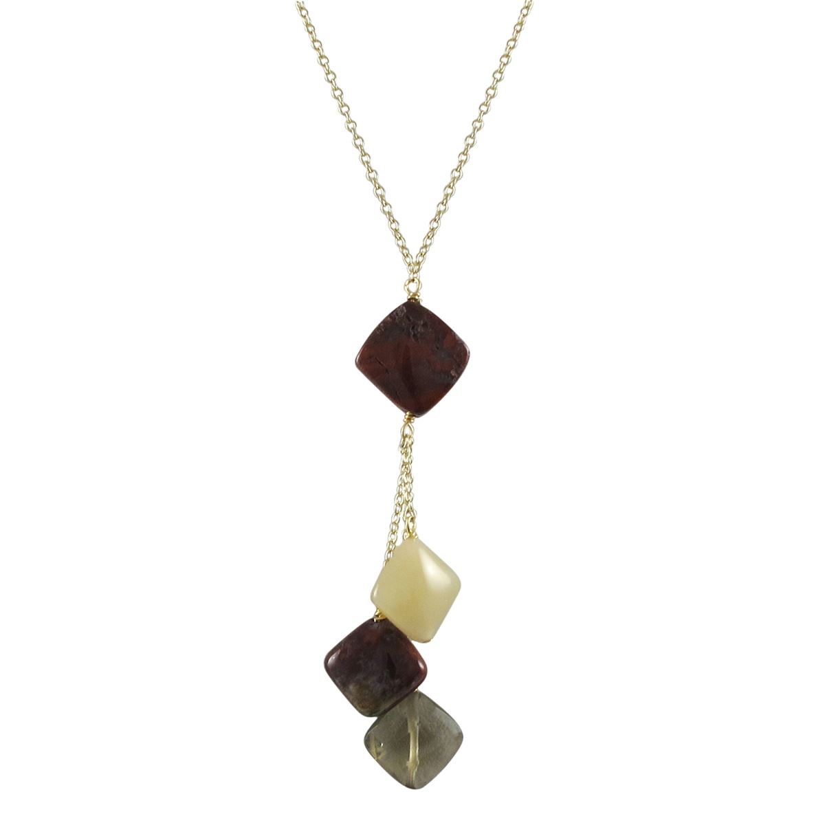 Assorted Semi Precious Stone Lariat Style Necklace -16" 2"